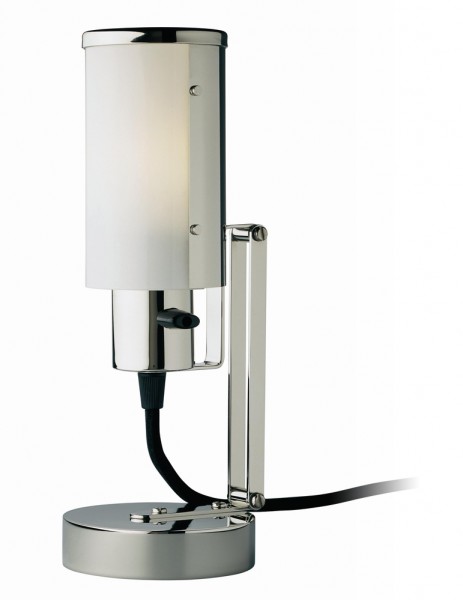 Gedacht ist die heute von Tecolumen produzierte Leuchte als multifunktionale Tisch- oder als Wandleuchte. Bezeichnend dafür ist die nüchterne und klare Form, zusammengesetzt aus drei verschieden großen Zylindern. Auch die offen, gezeigten Verschraubungen betonen noch einmal die Funktionalität dieser Leuchte.