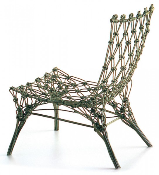 Ursprünglich für Droog Design entwarf der Holländer Marcel Wanders 1996 den Knotted Chair. Der heute von Cappellini produzierte Sessel ist mehr als ein Objekt zu verstehen. Bestehend aus aufwendig verknoteten Faserkordeln, werden diese mit Epoxydharz imprägniert. Nach einem Trocknungsprozess entsteht in einem Rahmen so die entgültige Form, die dabei äußerst stabil ist.