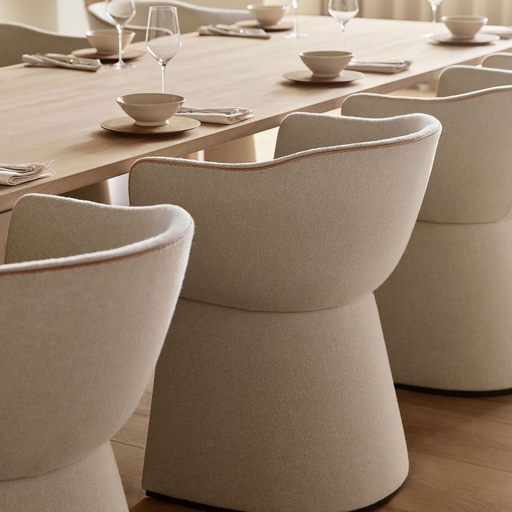 Erstmalig wurde der Monolit Chair von Cecilie Manz während der 3 Days of Design 2024 in Kopenhagen von Fritz Hansen präsentiert, die Serie bestehend aus Stuhl und Sessel fand sofort einen enormen Anklang. Denn das unverwechselbare Design mit den organischen Kurven und die monolithische Form umhüllen den Sitzenden und sorgen für ein Gefühl von Privatsphäre. Der Monolit Stuhl kann mit ganz verschiedenen Stoffen gepolstert werden, zur Wahl stehen exemplarisch die Stoffe Christianshavn (wie angeboten), Canvas, Remix, Tonus, Divina, Hallingdal, Karakorum, Re-wool, Serpentine, Steelcut, Sunniva, Twill Weave, oder Vidar. Wählen Sie entweder ein einzigen Stoff für den gesamten Stuhl oder die Option für zwei verschiedene Textilien: eine Stoff für die Innenschale, ein weiterer Stoff für die Außenschale und das Gestell. Zusätzlich kann der Stuhl (gegen Aufpreis noch mit einem umlaufenden Keder aus Kernleder (bei Fritz Hansen Paspelierung genannt) versehen werden, um so einen maßgeschneiderten Look für gewerbliche und private Innenräume zu schaffen. Auf der Internetseite von Fritz Hansen können Interessierte en Monolit Stuhl individuell zusammenstellen: www.fritzhansen.com