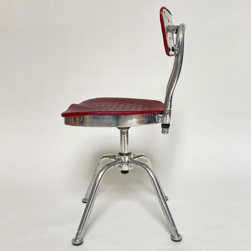 Ab 1935 entwarf Gio Ponti den Hauptsitz des aluminiumverarbeitenden Unternehmens Montecatini in Mailand. Für die Inneneinrichtung des Bürogebäudes Primo Palazzo Montecatini (siehe letztes Foto) entwickelte der Architekt verschiedene Arbeitsstühle aus dem Werkstoff seines Auftraggebers – Aluminium. Insgesamt entstanden damals sechs verschiedene Modelle, die heute designhistorisch einen Vorbildkarakter haben. Denn nicht nur durch die damalige Kombination modernster Materialien (Aluminium, Bakelit und Sika-Kunstleder) ist dieser Entwurf sehr wichtig, die Serie wurde in großen Stückzahlen als anonymer Entwurf in den USA gefertigt und fand sich fast in jedem Büro. Heute werden diese Modelle häuig als Gio Ponti Entwurf angeboten – das Original aus dem Palazoo Montecatini finden Sie bei Markanto.