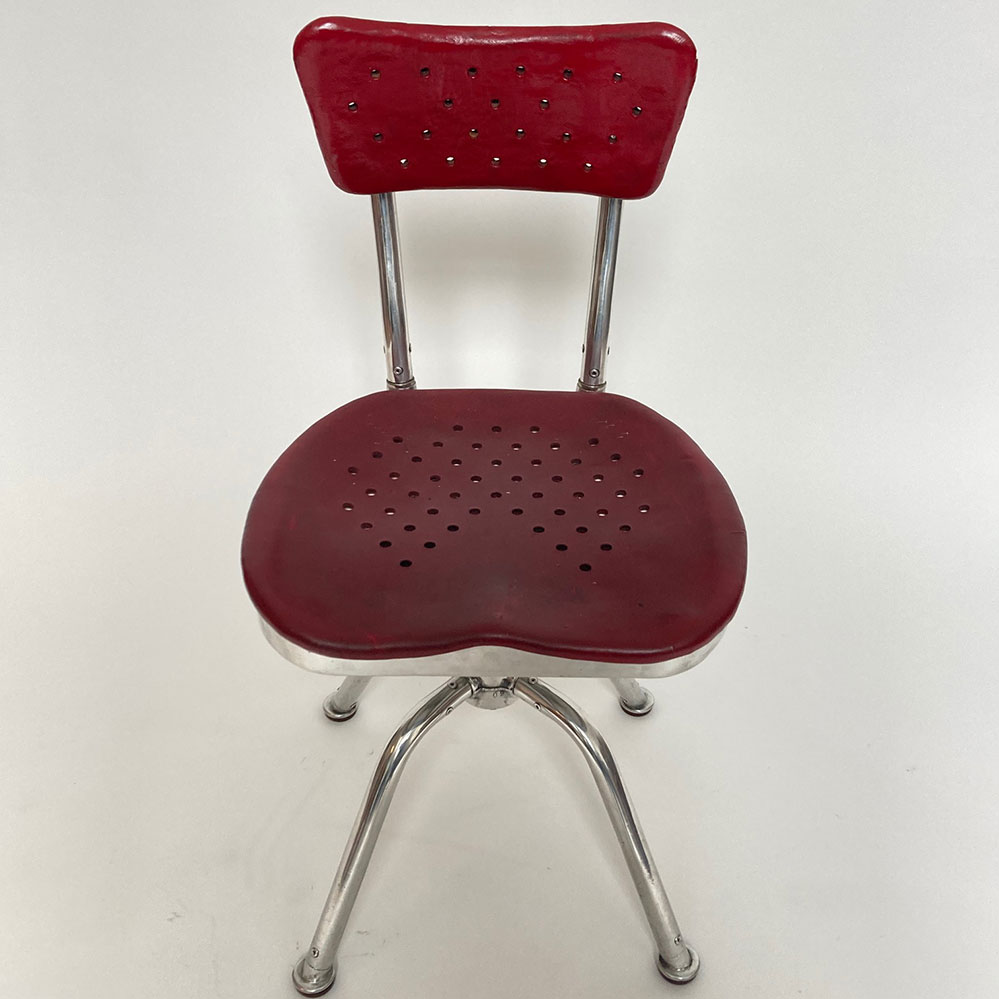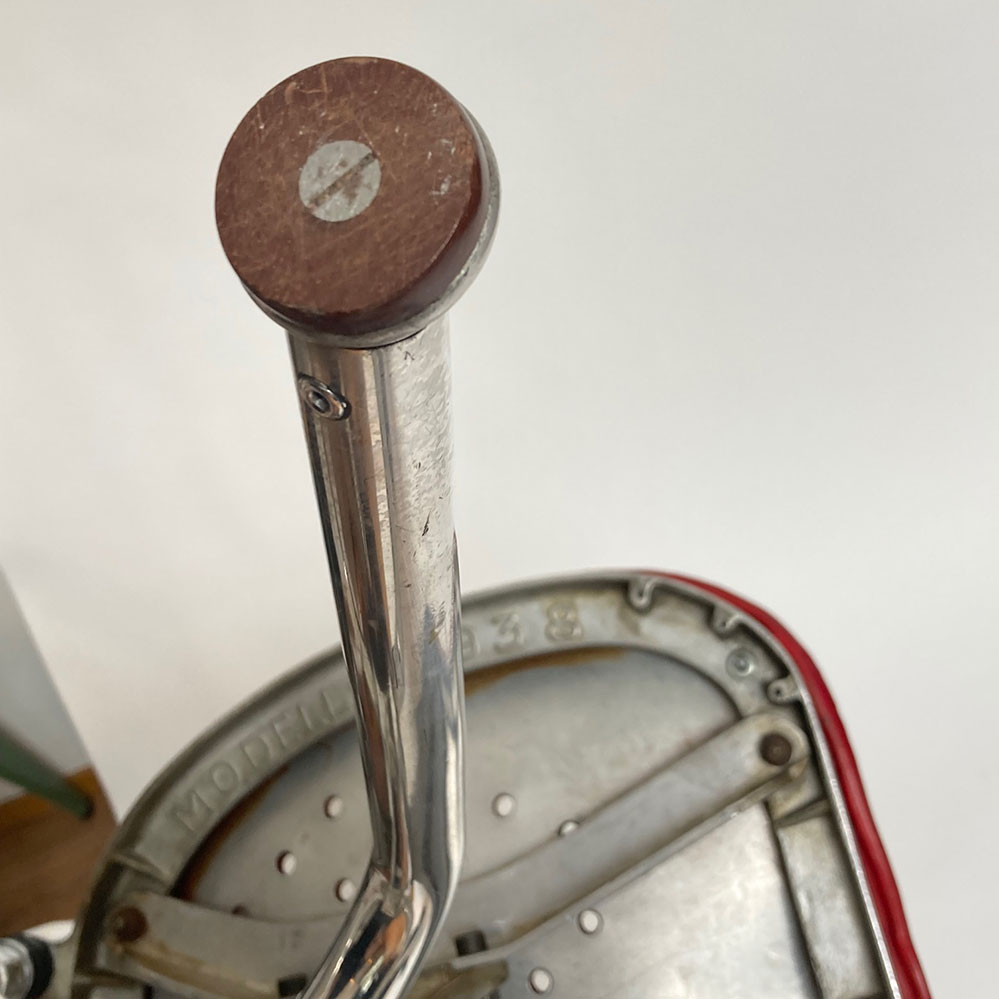 - Aluminium, Bakelitfüsse und dunkelrotes Sika-Kunstleder
