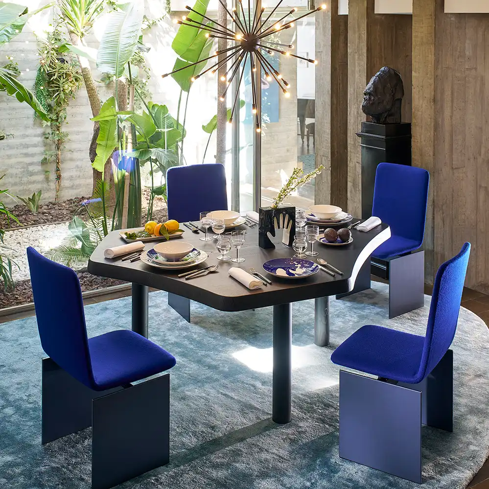 Für ihr Atelier im gleichnamigen Pariser Stadtteil entwarf Charlotte Perriand 1938 diesen asymmetrischen Esstisch, er zählt zu ihrer berühmten Tischserie "en forme libre", mit der sich jeder Raum optimal nutzen lässt. Dank der charakteristischen Form, die aus sechs Seiten besteht, ist der Tisch Montparnasse einzigartig in der Geschichte des Designs. Ende der 1930er Jahre revolutionierte dieses Modell die Vorstellung von traditionellen Tischen, die sich typischerweise durch einfache geometrische Formen wie quadratisch, rechteckig, rund und oval auszeichnen. Obwohl er auf nur drei Beinen ruht, ist die Struktur äußerst stabil. Charakteristisch ist die von Perriand entworfene Tischplatte, die einen doppelten Zweck erfüllt: Einerseits ist sie für kompakte Räume geeignet, andererseits bietet sie bequem Platz für eine größere Anzahl von Gästen.