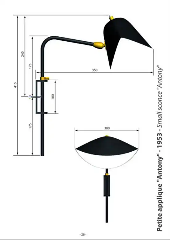 Editions Serge Mouille Wandapplike „Petite Applique Antony” / Sconce „Petite Applique Antony” on Serge Mouille