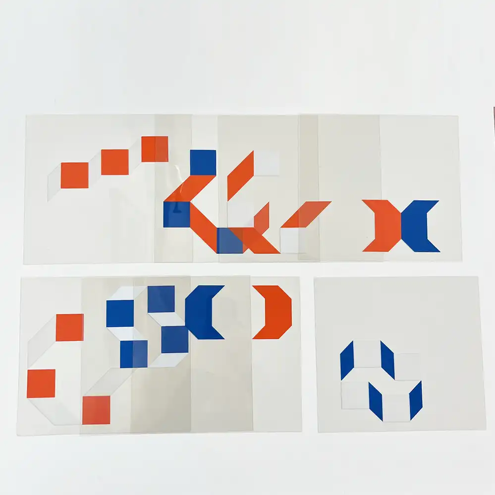 Konzpiert ist das Multiple für eine Präsenation in einem Diaprojektor, wie es in den 1970er oder 80er Jahren üblich war. Die einzelnen acht bedruckten Diafolien lassen sich miteinander und übereinander ergänzen, so dass immer eine andere Form möglich ist.