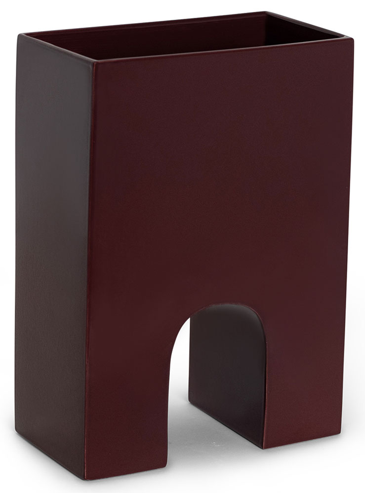 Die dunkelrote MVS-6 Vase zählt zu einer achtteiligen Keramik-Kollektion, die 2023 von Muller Van Severen für Bitossi entworfen wurde. Dabei unterscheiden sich die acht Keramiken alle von Form und Farbe.