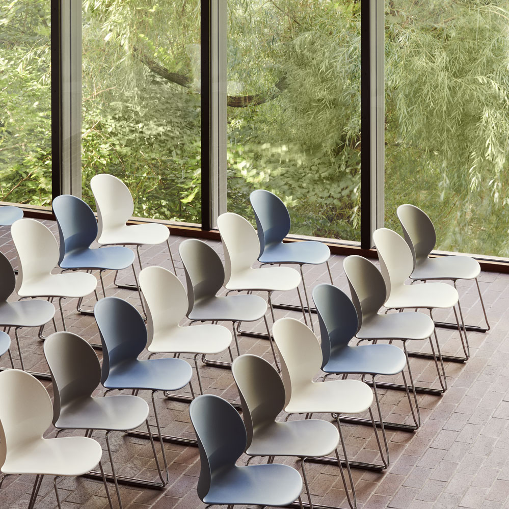 Der N02-20 Recycle Kufenstuhl von Fritz Hansen ist nicht nur einer preiswerter Stuhl für die Großraumbestuhlung sondern überzeugt auch durch sein ökologisches und nachhaltiges Konzept: die Sitzschale besteht zu 100% aus recycelten Haushaltsabfällen, die in Zentraleuropa gesammelt, verarbeitet und upcycelt wurden. Dabei ist die daraus entstandene Kunststoffsitzschale später wieder recylclebar. Auch das Kufengestell besteht aus zu 50% recycelten, verchromtem Stahl. Das Design der Schale selbst ist von einem simplen Papierstapel auf dem Schreibtisch der Nendo-Designer inspiriert. Zusätzlich ist der Receycle-Stuhl noch als Stuhl, Armlehnstuhl und als preiswerter Drehstuhl auf Anfrage erhältlich.