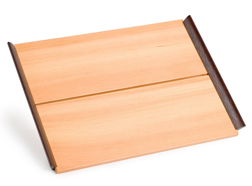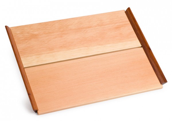 Das Nakashima Tablett ist streng genommen ein Entwurf von Mira Nakashima, der Tochter von George Nakashima, welche heute sein Werk pflegt und fortsetzt. Das Tablett aus Douglas Fichte basiert dabei auf George Nakashimas Entwurf des Splay-Leg Table. Erhältlich ist das Tablett, hergestellt von Knoll International, mit einer Leiste aus Santos Palisander.