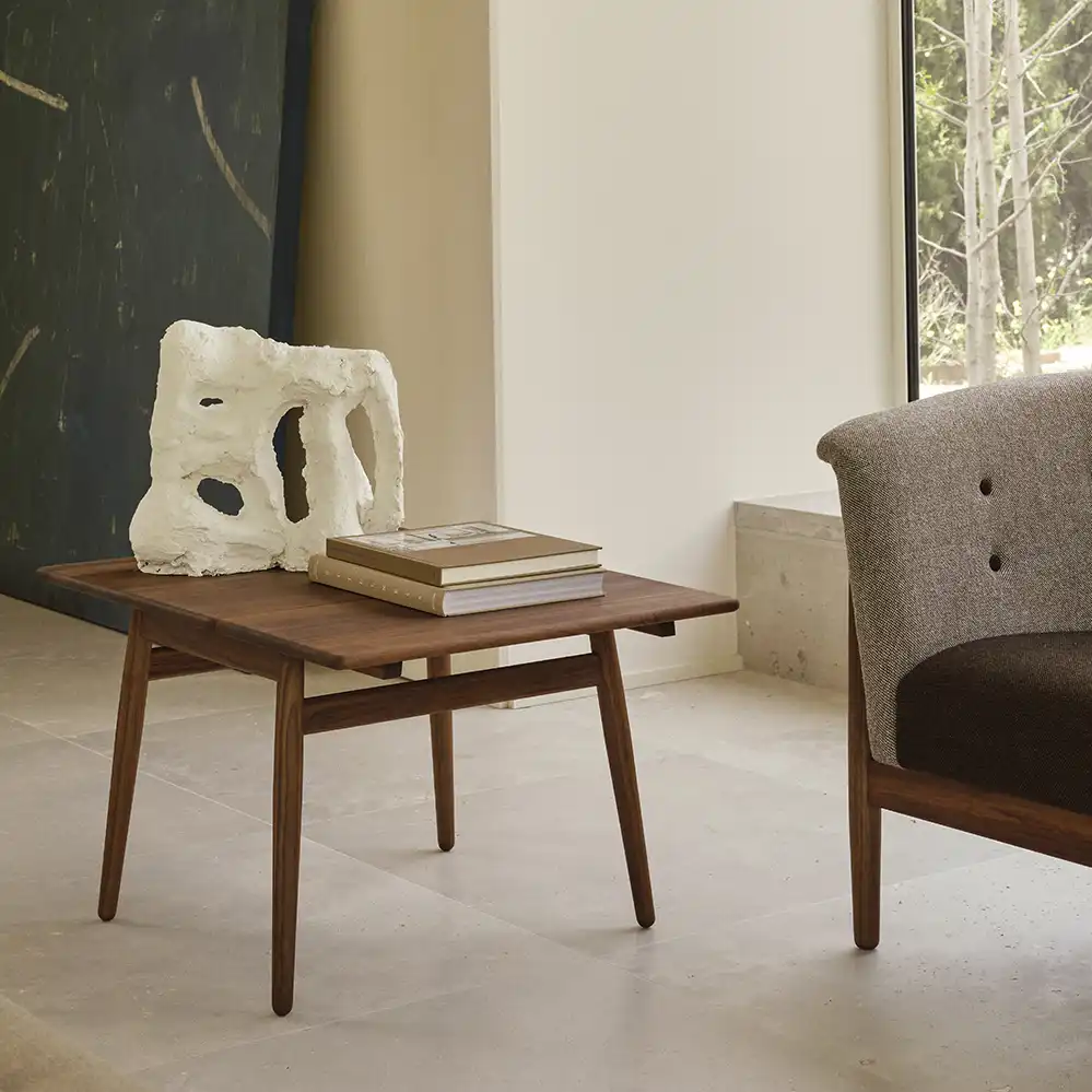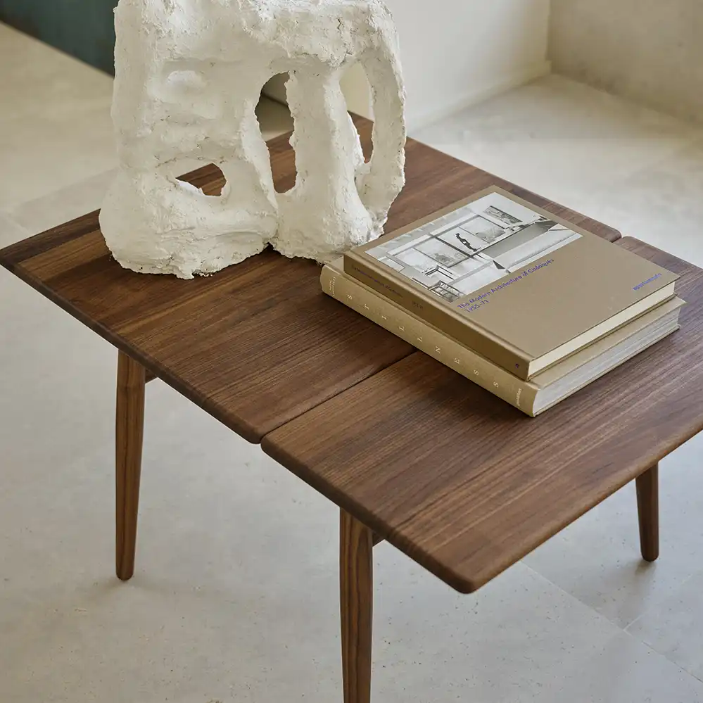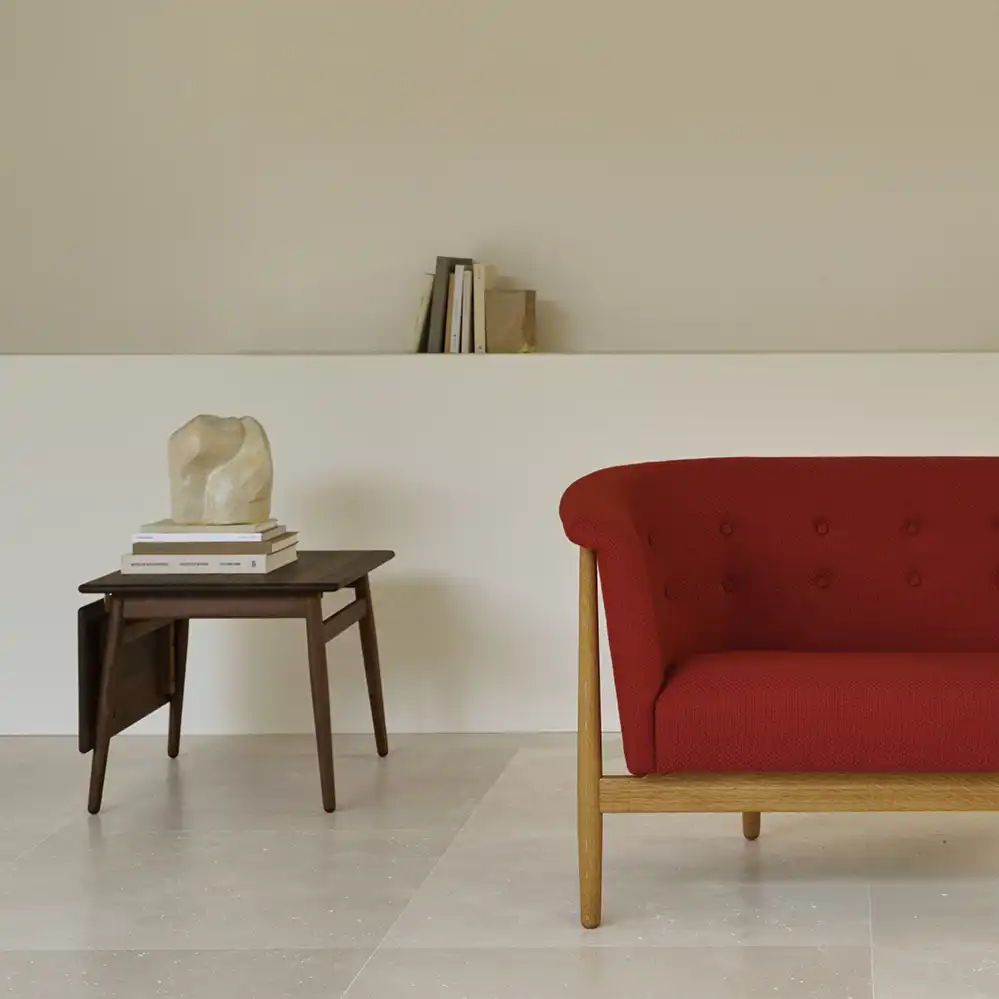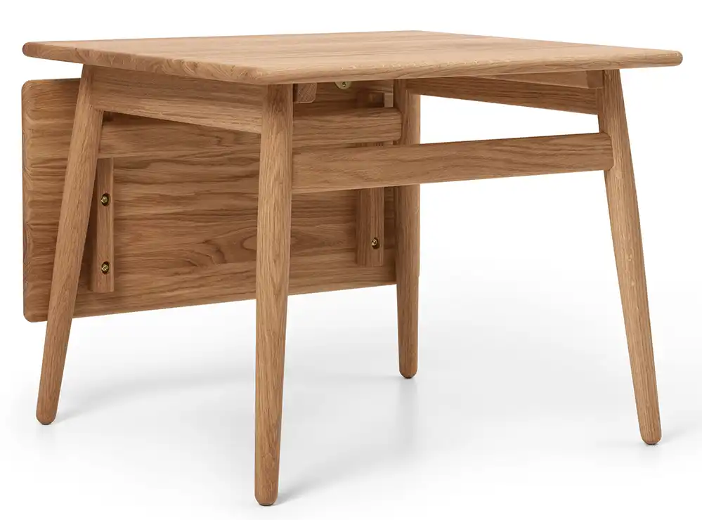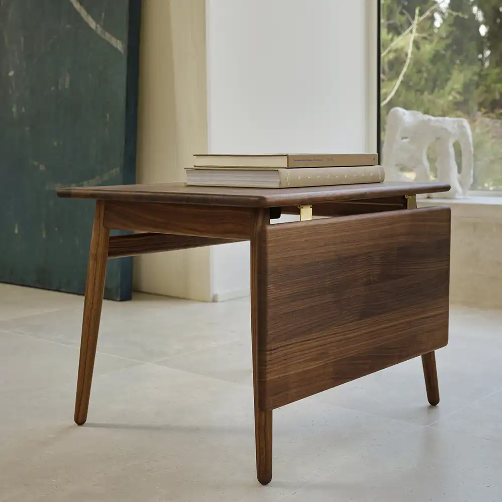 Den kleinen, klappbaren Couch- oder Beistelltisch entwarf Nanna Ditzel zusammen mit ihrem Mann Jørgen Ditzel im Jahr 1955, 2025 wurde das Möbel von Carl Hansen neu aufgelegt. Der 47 cm hohe Tisch kann durch das Ausklappen der Tischplatte von 53 cm auf 83 cm verlängert werden.