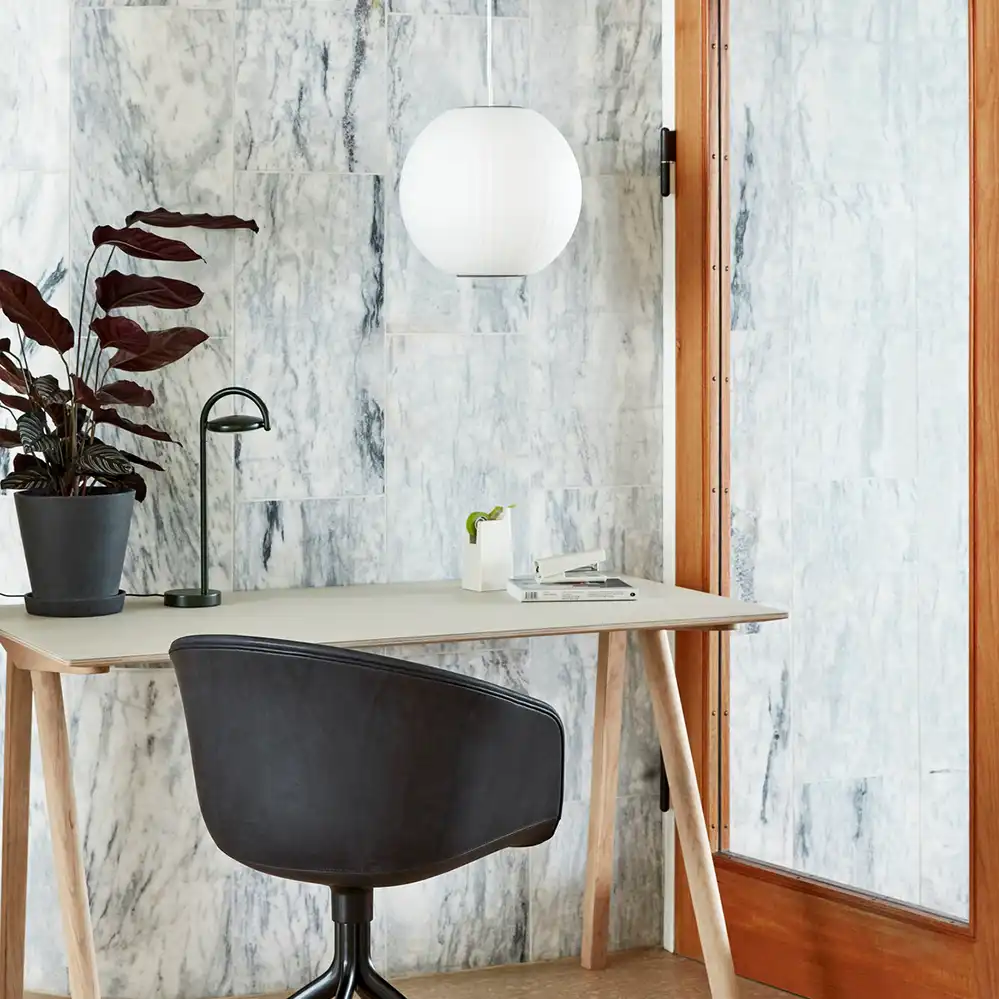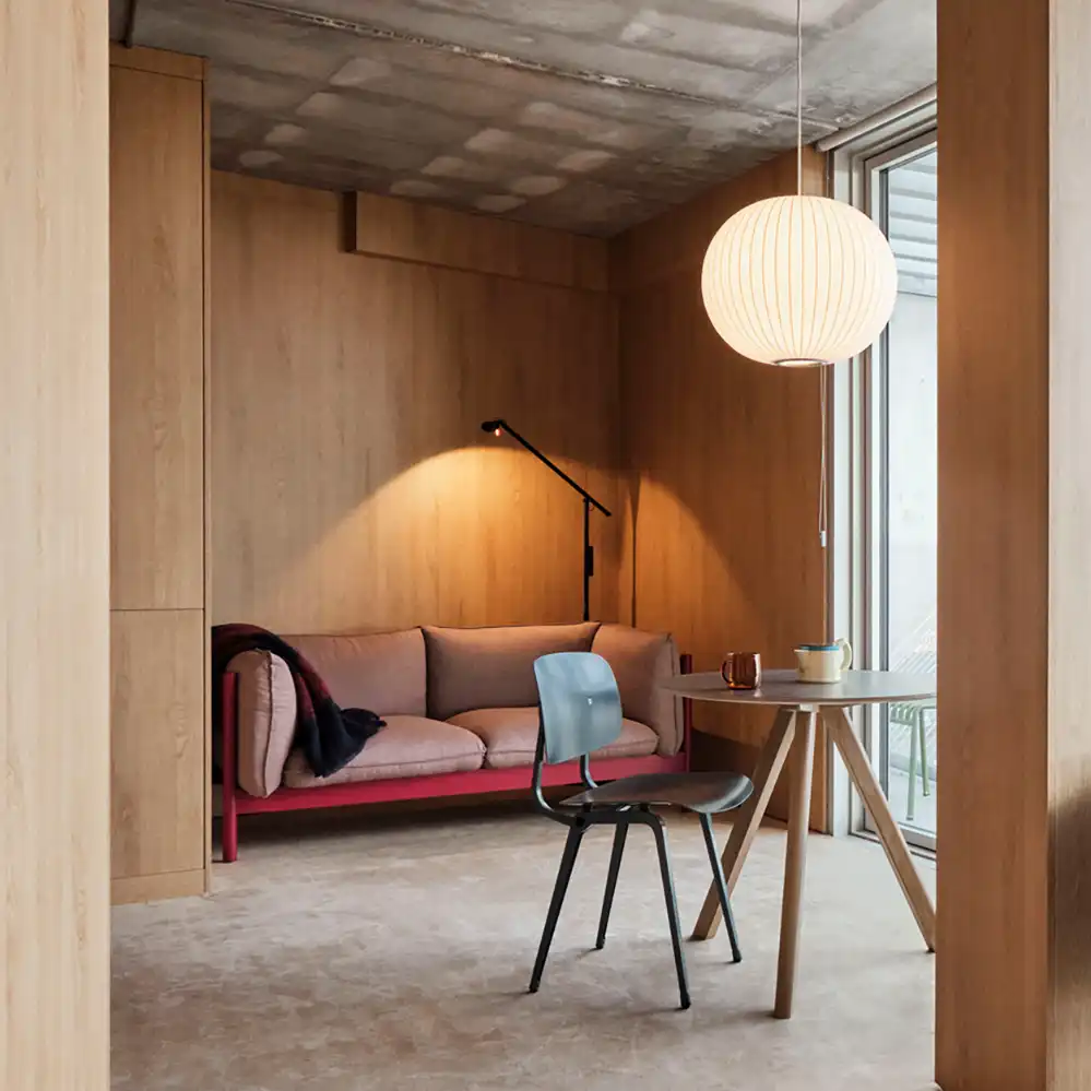 Die Nelson Ball Bubble Lamp Small ist die kleinere Variante der klassischen Kugelleuchte aus George Nelsons berühmter Bubble Lamp Kollektion. Ihr vertikal ausgerichtetes Stahldrahtgestell verleiht der Leuchte eine klare Struktur, während das aufgesprühte Webbing Polymer für ein weiches, blendfreies Licht sorgt. Das Design stammt aus den späten 1940er Jahren und wird heute von HAY nach dem originalen Verfahren produziert – in Zusammenarbeit mit Herman Miller.