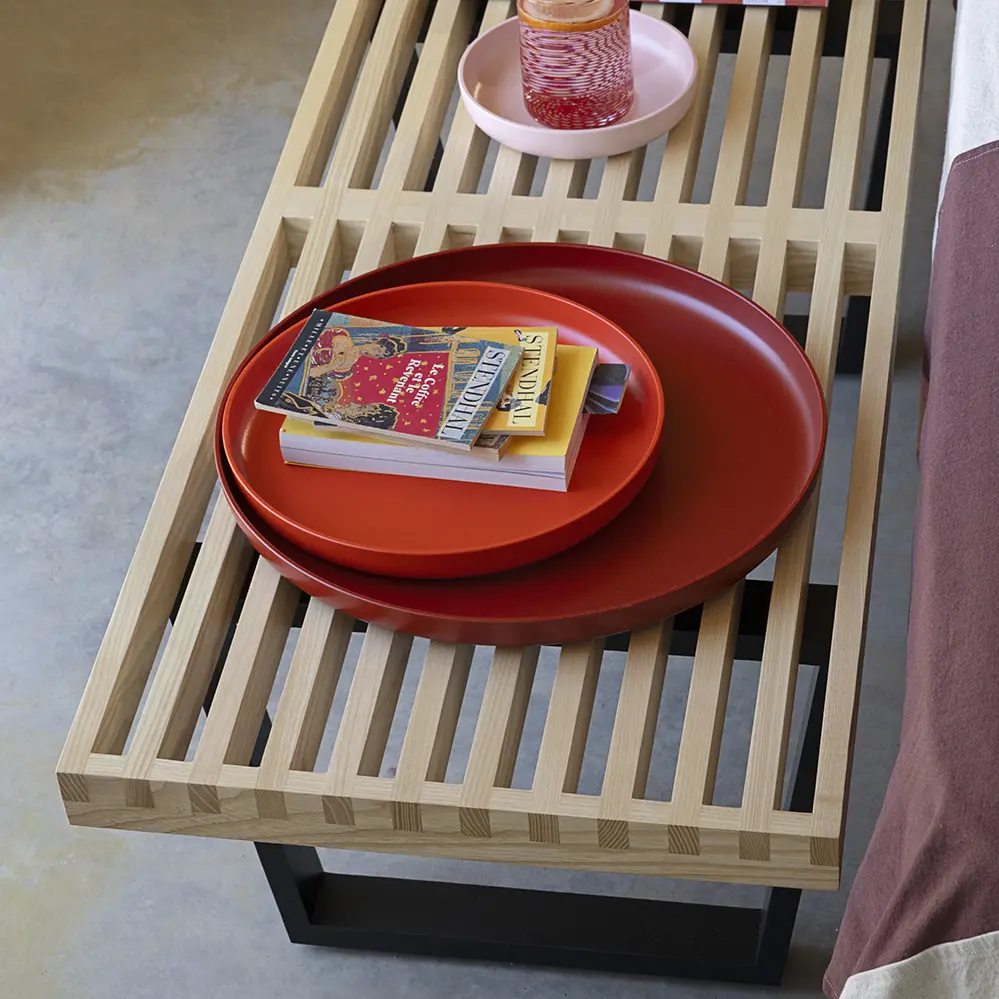 Seit Herbst 2021 ist die George Nelson Bank bei Vitra wieder in einer komplett schwarzen Variante erhältlich. Die geradlinige Formensprache der Nelson Bench reflektiert George Nelsons architektonischen Hintergrund. Gleichermaßen ist das multifunktionelle Möbel als Bank wie als Ablagetisch einsetzbar. Wie viele Designklassiker ist die Bank variabel zu verwenden und nicht auf einen bestimmten Zweck festgelegt. Ursprünglich entwarf George Nelson die Bank für sein Büro bei der Zeitschrift Fortune, in unterschiedlichen Varianten wurde sie dann Bestandteil seiner ersten Kollektion für Herman Miller. Die Bank ist in zwei Größen erhältlich: