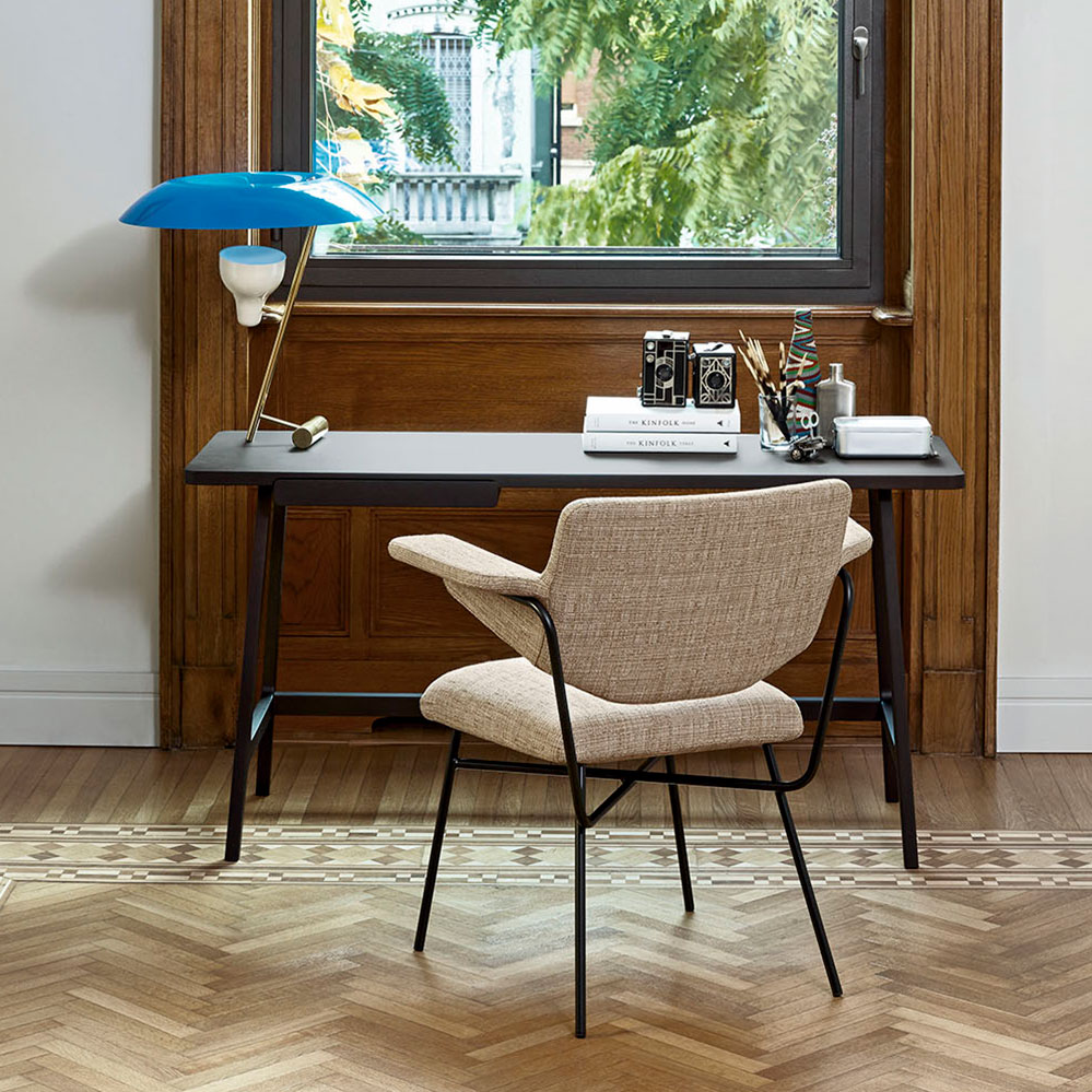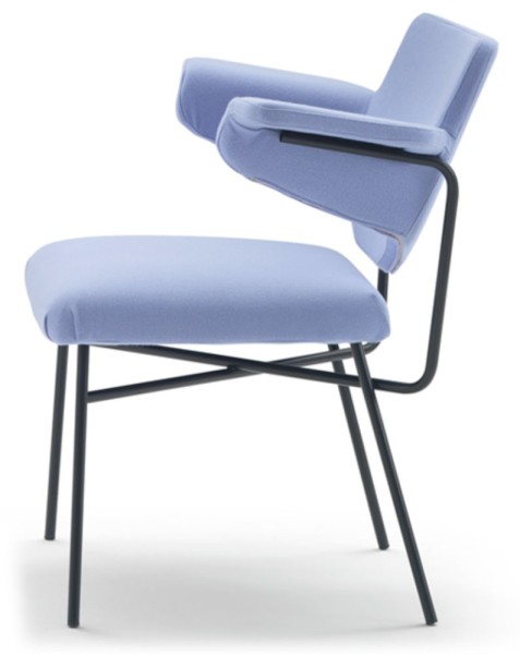 Den Neptunia Armlehnstuhlentwarf die Architektengemeinschaft Studio B.B.P.R. im Jahr 1953 für Arflex, passend zu dem Armlehnstuhl ist der ähnliche Modell Elettra (auch von Studio B.B.P.R.)