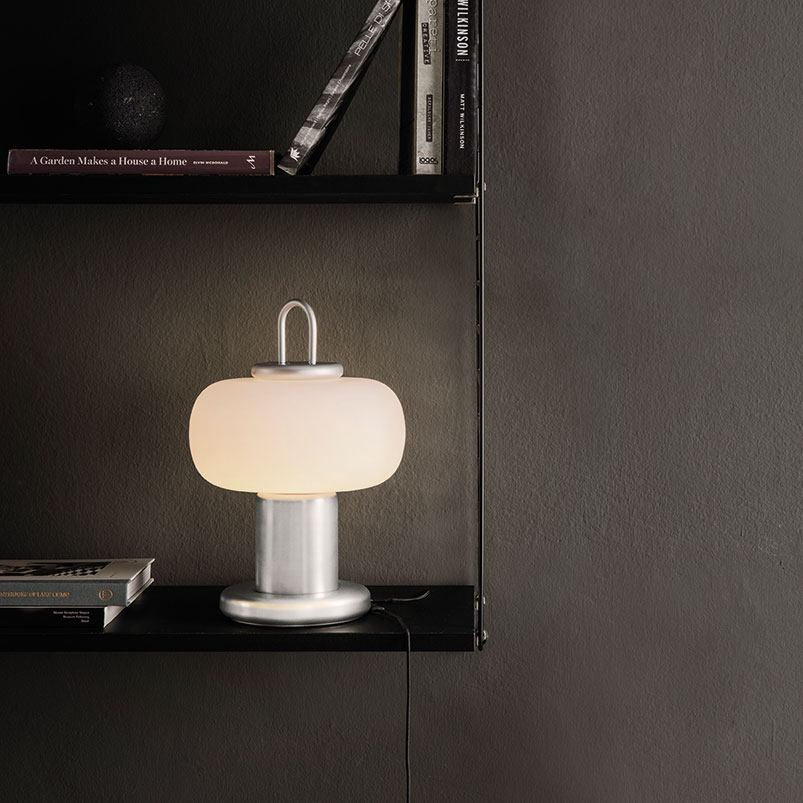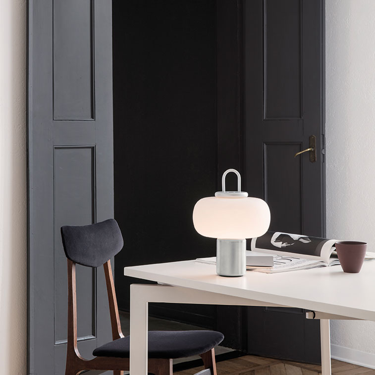 Mit der Tischleuchte Nox präsentierte Astep eine der weltweit ersten modularen Leuchten, die ohne ein Kabel auskommen. Charakteristisches Merkmal der tragbaren Tischleuchte Nox von astep ist das kabellose Ladegerät mit Induktionstechnologie, das die Möglichkeit bietet, diese äußerst vielseitige Leuchte ohne Kabelanschluss zu verwenden. Die Nox Leuchte besteht aus vier Elementen: der Ladegerät, einem Gehäuse aus anodisiertem Aluminium,welches das Ladeaggregat enthält, einem mundgeblasenen Diffusor aus Opalglas und einem schlichten Griff. Der integrierte Berührungsdimmer ermöglicht eine bedarfsgerechte Beleuchtung, zum Beispiel helles Licht zum Lesen oder sanftes Licht für eine gemütliche Atmosphäre.