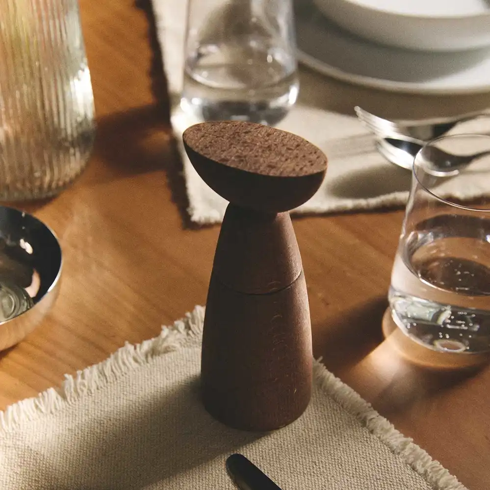2025 entwarf Michele de Lucchi für Alessi die beiden Salz-, Pfeffer- oder Gewürzmühlen Oaxaca und Yukatan und aus braun gebeiztem Buchenholz. „Da gibt es wenig Raum für Spielereien! Die Grundregel für eine Pfeffermühle ist, dass sie sofort als solche erkennbar sein muss. Eine Pfeffermühle die nicht wie eine solche aussieht, interessiert niemanden. Ich, der immer mit dem Wunsch anfängt, mit Kuriositäten und Extravaganzen zu verblüffen, habe mein Projekt auf das Wesentliche einer Säule mit einem Drehkopf zurückgeführt und mich dann lieber an der Drehbank vergnügt. Dabei bildeten sich kleine Muster, die mich an aztekische Pfähle denken ließen. So wurden Yucatan und Oaxaca geboren, zwei kleine hölzerne Totems, die ihren Platz in der Küche finden sollen” so Michele De Lucchi über das Design und die Funktionalität.
