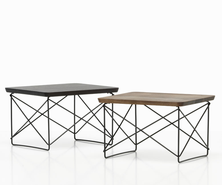 2017 legte Vitra die Eames LTR Occasional Tables mit verschiedenen Massivholztischplatten auf. Erhältlich sind noch bis zum Jahresende 2025 die Tischplatten wahlweise in Eiche oder Nussbaum. Wie bei allen LTR-Tischen ist dabei die Kante in einem Winkel von 20 Grad geschnitten.