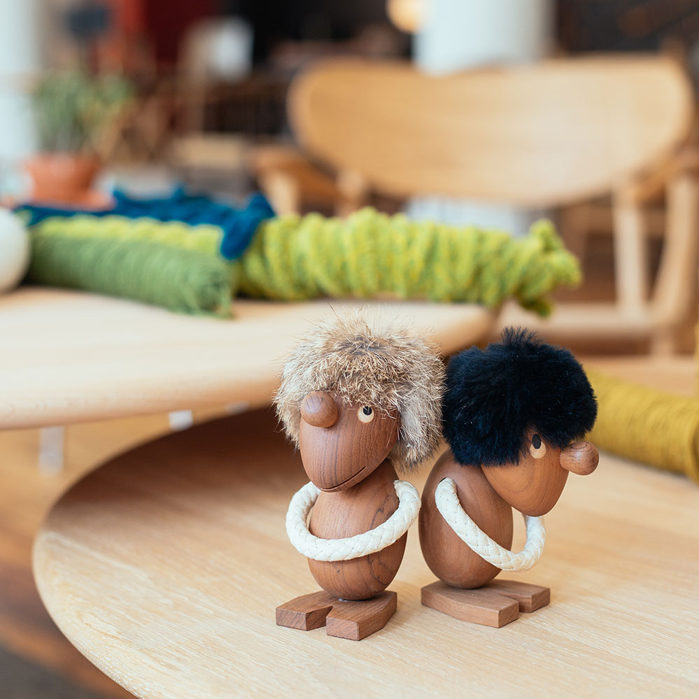Mit den beiden Holzfiguren Optimist und Pessimist schuf der dänische Designer und Grafiker Hans Bølling 1959 zwei Symbole, die heute immer noch zeitgemäß sind und sich großer Beliebtheit erfreuen. Der Optimist verfügt über ein sympathisches Lachen, während der Pessimist naturgemäß eher grimmig daherkommt. Hergestellt in Handarbeit von Architectmade.