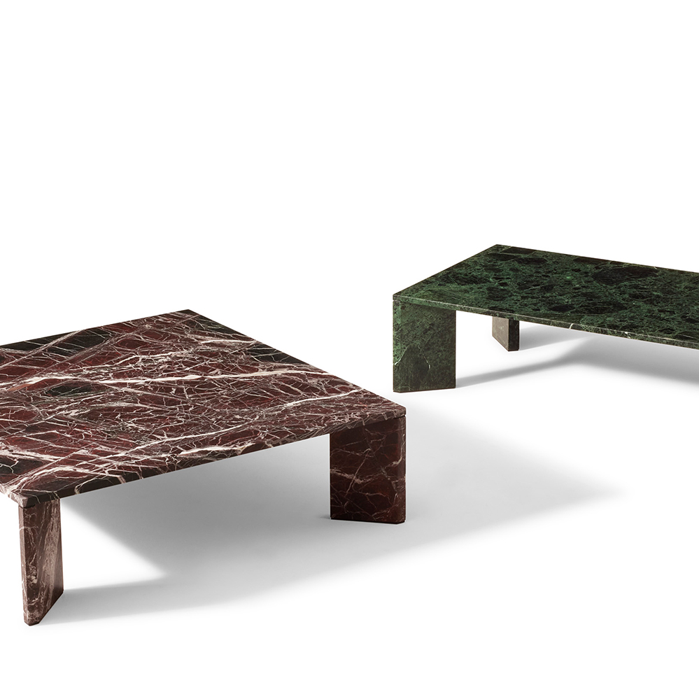 Der massive Marmortisch Ordinal Low Table wurde von Michael Anastassiades für Cassina entworfen und ist in zwei verschiedenen Größen (110 x 110 cm oder 140 x 70 cm) erhältlich. Gefertigt wird der sehr schwere Tisch immer aus mattem Marmor.