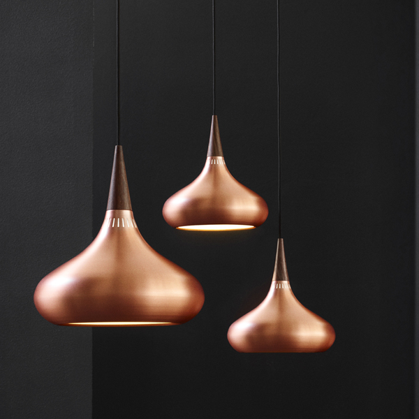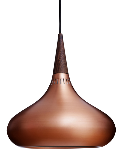 2013 wurde der dänische Lichtklassiker in der Kupferversion neu aufgelegt; 2015 folgte die Ergänzung mit einem matt schwarzen Schirm. Beide Varianten haben oben den eleganten Abschluss aus Palisanderholz.