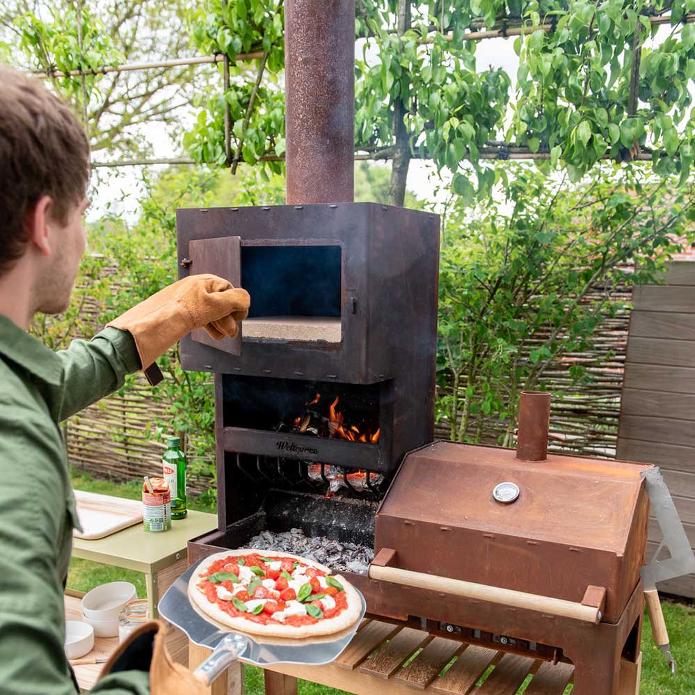 - Cortenstahl, Lieferung inklusive Pizzastein und Grillrost
