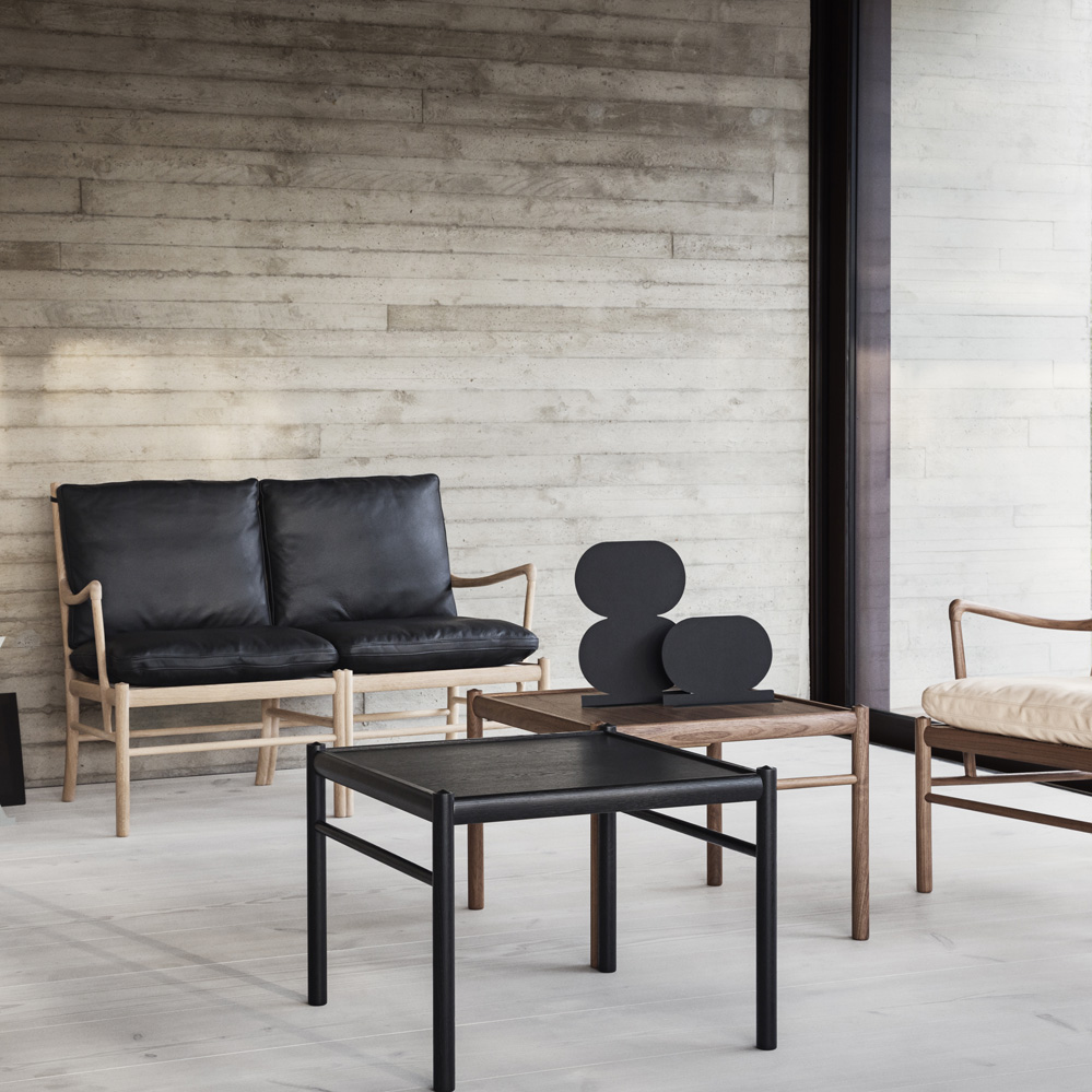 Als Ergänzung zu seiner Colonial Möbelserie entwarf Ole Wanscher 1964 den passenden Couch- oder Beistelltisch. Der quadratische Tisch ist bei Markanto als Standard in Eiche oder Nussbaum erhältlich.