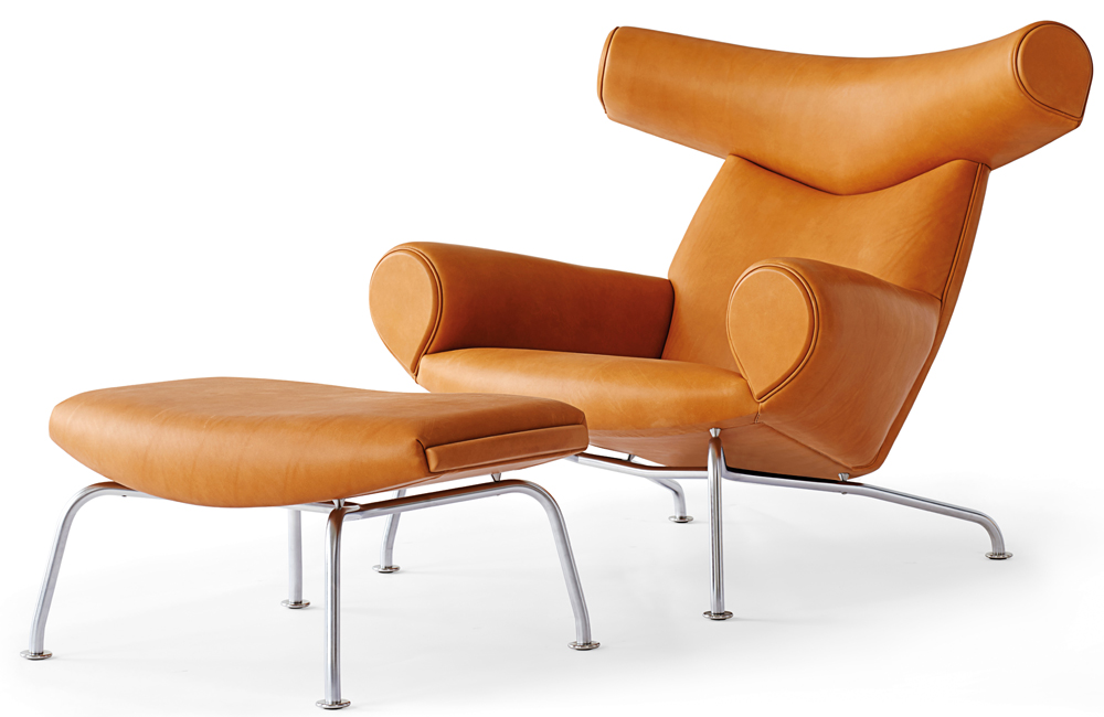 Ein sicherlich majestätisches Sitzvergnügen bietet der Ox Chair in der Ledervariante. Der für Hans Wegner eher untypischer Entwurf aus dem Jahr 1960 wird seit über 60 Jahren von Erik Jørgensen bzw. seit 2020 von Fredericia produziert (Erik Jørgensen wurde von Fredericia übernommen). Im Gegensatz zu seinen meisten anderen Entwürfe des dänischen Designers sind hier keine Holzelemente sichtbar. Zusätzlich ist zu dem sehr komfortablen Sessel auch ein passender Hocker (Ottoman) erhältlich.