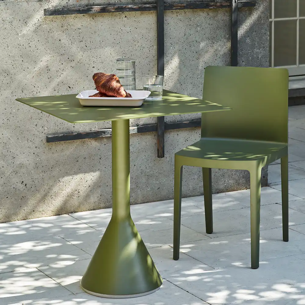 Der Palissade Cone Table in rechteckiger Ausführung wurde von den französischen Designern Ronan und Erwan Bouroullec für HAY entworfen und ergänzt die Palissade-Kollektion um einen markanten, stabilen Tisch für den Außenbereich. Charakteristisch für dieses Modell ist der konisch geformte Sockel, der dem Tisch nicht nur visuelle Präsenz, sondern auch hohe Standfestigkeit verleiht. Dank der wetterfesten Materialien und der schützenden Grundierung ist der Tisch ideal für den Einsatz auf Terrassen, Balkonen, in Gärten oder öffentlichen Außenbereichen.