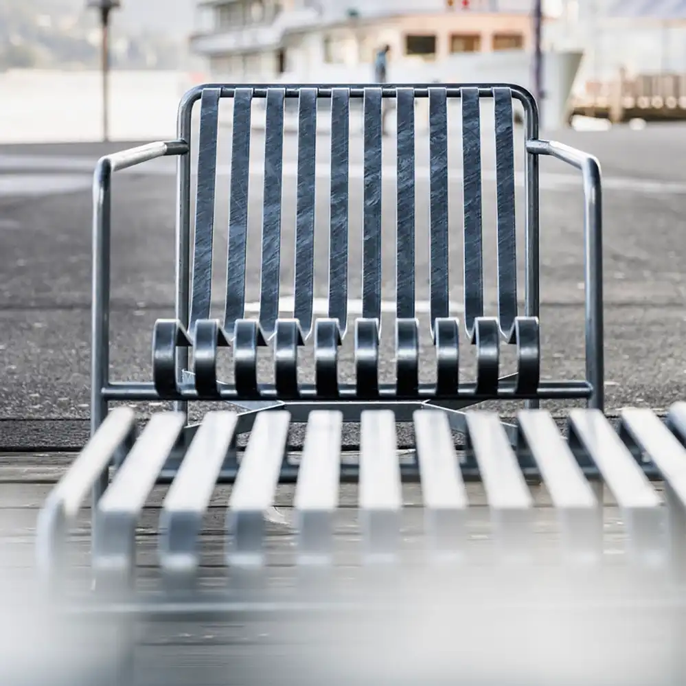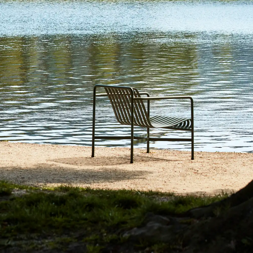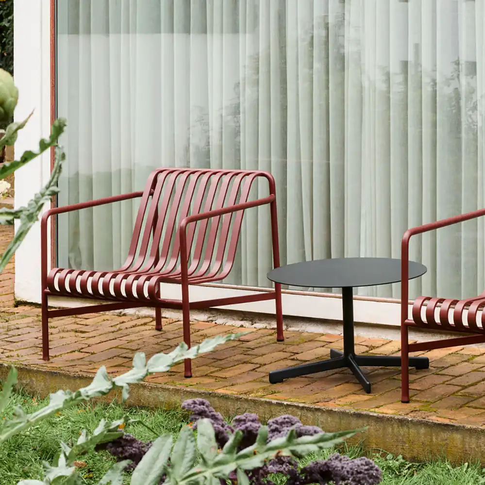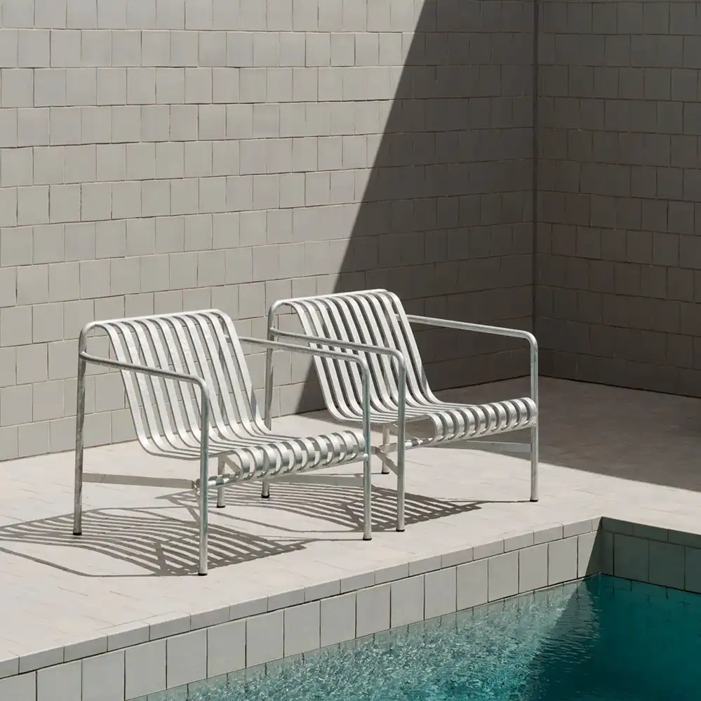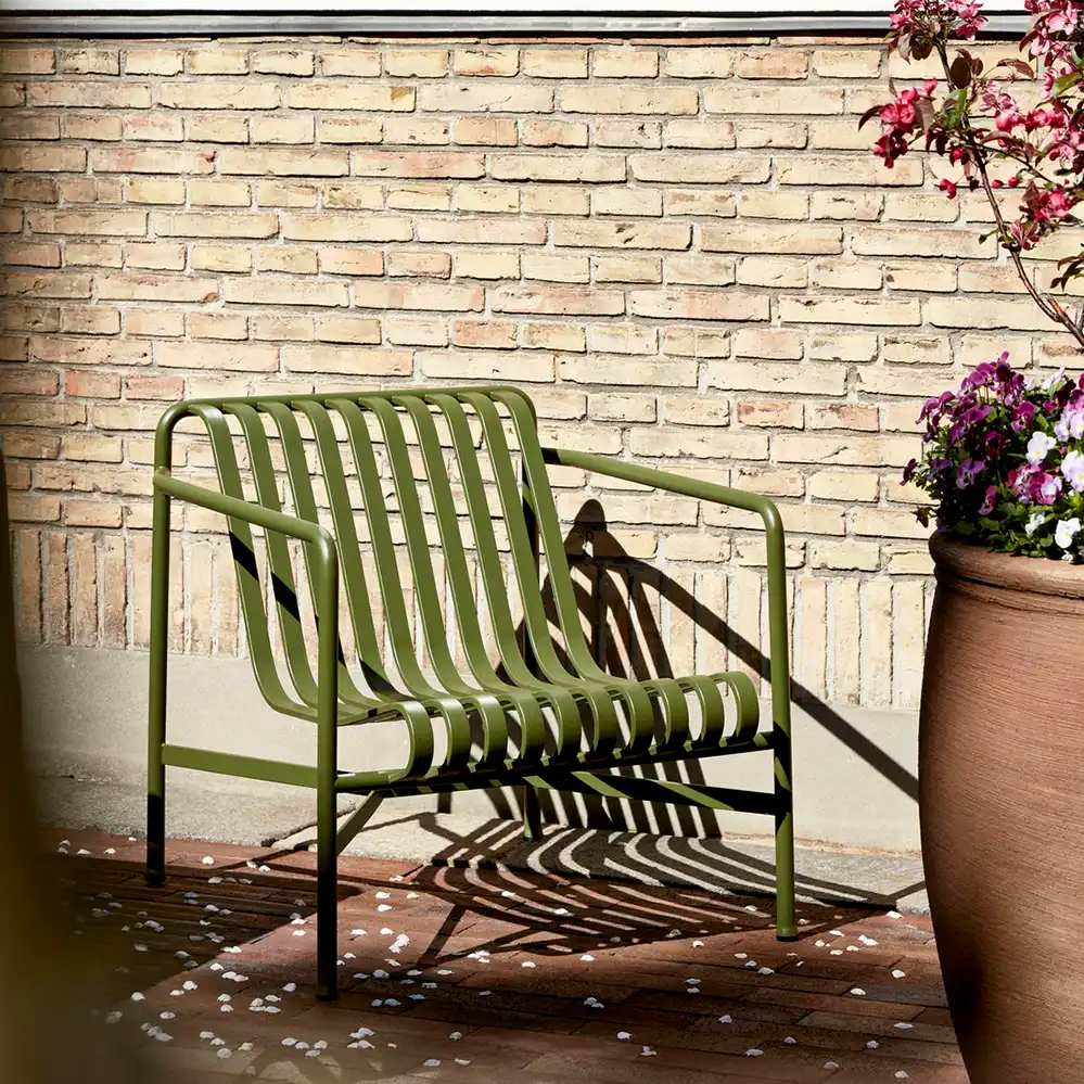 Der Palissade Lounge Chair Low ist Teil der Outdoor-Möbelkollektion von Ronan und Erwan Bouroullec, entworfen für das dänische Designlabel HAY. Mit seiner niedrigen Sitzhöhe und der leicht geneigten Rückenlehne bietet der Stuhl eine entspannte Sitzposition und eignet sich ideal für den Einsatz in privaten wie öffentlichen Außenbereichen. Die Konstruktion aus pulverbeschichtetem oder galvanisiertem Stahl gewährleistet eine hohe Widerstandsfähigkeit gegenüber Witterungseinflüssen. Die offene Strebenstruktur unterstützt die Luftzirkulation und verhindert Wasseransammlungen, was den Stuhl besonders pflegeleicht macht. Für zusätzlichen Komfort ist ein passender Fußhocker aus der Palissade-Serie optional erhältlich.