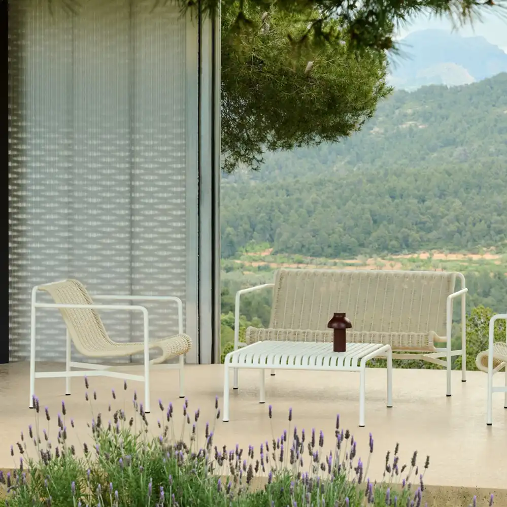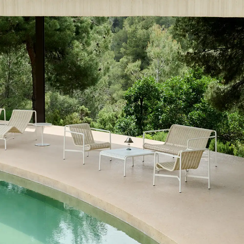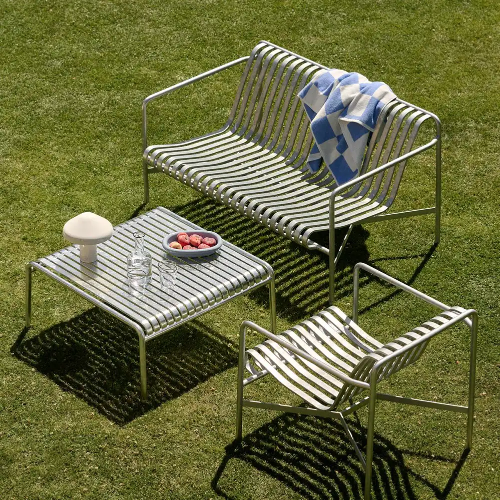 Der Palissade Low Table, entworfen von Ronan und Erwan Bouroullec für HAY, ist ein kompakter, niedriger Tisch für den Außenbereich, der sich ideal als Beistelltisch oder als Ergänzung zu Lounge-Möbeln eignet. Mit seiner reduzierten Höhe passt er perfekt zu den Palissade Lounge Chairs und dem Lounge Sofa und schafft eine stimmige Sitzlandschaft im Freien. Gefertigt aus pulverbeschichtetem oder galvanisiertem Stahl, ist der Tisch wetterfest und langlebig. Die offene Strebenstruktur der Tischplatte sorgt für eine gute Luft- und Wasserzirkulation, wodurch sich der Tisch auch bei wechselnden Wetterbedingungen als pflegeleicht erweist.