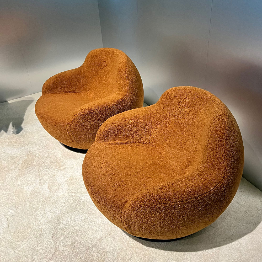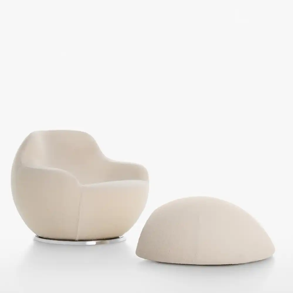 Eine Ikone des italienischen Designs ist der Palla Sessel von Claudio Salocchi aus dem Jahr 1969. Zusammen mit dem passenden Ottomane bildet der Sessel eine Kugel (siehe zweite Abbildung). 2025 wurde dieser Konzeptentwurf von Acerbis neu aufgelegt, wahlweise in einer drehbaren und in einer starren Version. Selbstverständlich kann der Sessel auch ohne den Hocker verwendet werdem-