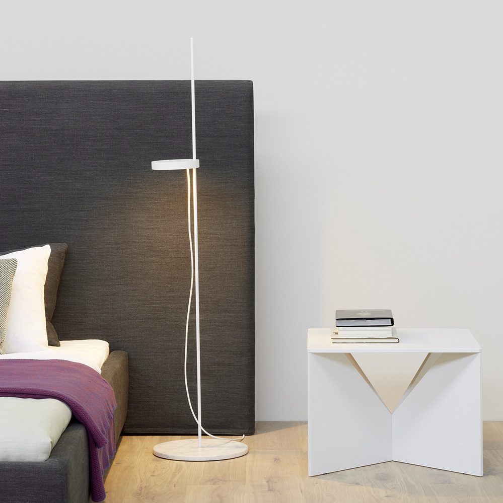 Die höhenverstellbare Stehleuchte PALO ist eine innovative und flexible Bodenleuchte, geeignet zum Lesen und Entspannen. Das ungeführte Kabel verleiht der sorgfältig ausgearbeiteten Formgebung einen zugleich lässigen wie dynamischen Charakter. Der Marmorfuß aus weißem Bianco Carrara oder schwarzem Nero Marquina erhöht die Reinheit der klar definierten Form der Leuchte.