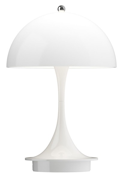 2020 legte Louis Poulsen die Panthella Tischleuchte als mobile Version auf, die im Laufe der Jahre immer wieder auf den neuesten Stand der Technik gebracht wurde, das aktuelle Modell ist die Panthella 160 Portable V3. Die mobile Leuchte ist dabei 23 cm hoch und ideal für den Einsatz zum Beispiel auf der Terrasse oder am Gartentisch. So können Sie das Licht dort nutzen, wo Sie es benötigen. Die Energieversorgung erfolgt dabei wahlweise über ein mitgeliefertes USB-Kabel oder drahtlos, die Akkulaufzeit beträgt ca. 5 Stunden bei 100% Aufladung.
