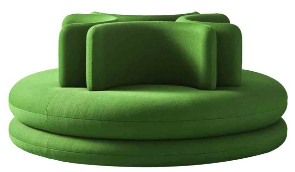 Das runde Panton Easy Sofa und der dazugehörige Sessel waren ursprünglich für den öffentlichen Raum gedacht und sorgten in der eher konservativen Welt der Objektmöbel der 1960er Jahre mit seiner Formgebung und seiner verspielten Erscheinung für Aufsehen. Trotz seiner anfänglich positiven Resonanz schaffte es die Möbel aus dem Jahr 1963 nie in die Serienproduktion und schlummerte bis jetzt in den Archiven. Erst 2022 erfolgte durch Verpan mit Lizenz des Panton Estate die erste industrielle Herstellung. Das Easy Sofa sticht als eines der optisch markantesten Stücke aus Verner Pantons Werk heraus. Mit seinen weichen runden Formen, dem dreiteiligen Schichtaufbau und dem bequemen Sitzkomfort funktioniert ddas runde Sofa als optischer Mitelpunkt in jeder Umgebung. Die große U-förmige Rückenlehne erlaubt dabei gleichzeitig eine Nutzung als Armlehne.