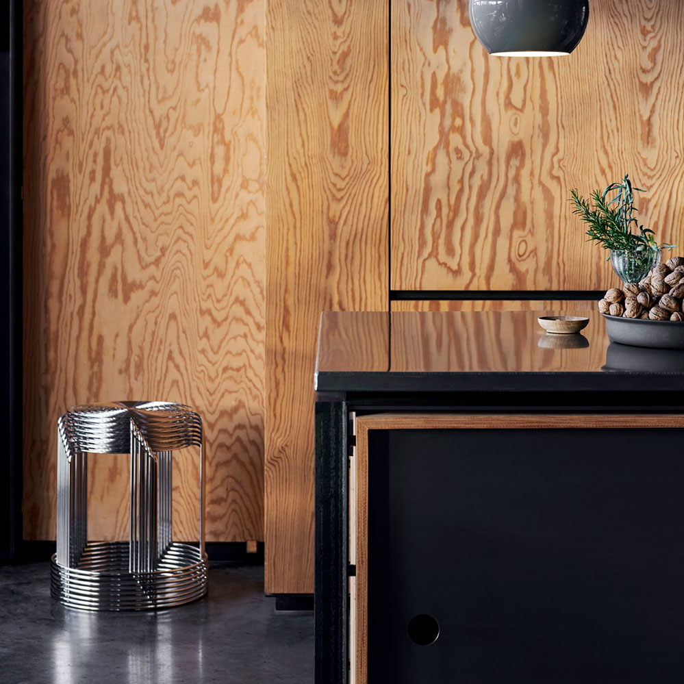 Der stapelbare Wire Stool ist ein späterer Entwurf von Verner Panton aus dem Jahr 1981, er erinnert formal an seine Drahtgittermöbel aus den 1970er Jahren. Das Möbel kann wahlweise als Hocker oder als Tisch verwendet werden, optional sind noch passende Sitzkissen bei andtradition erhältlich.