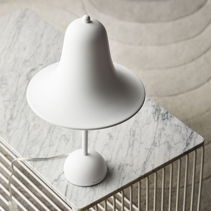 2020 legte Verpan die glockenförmige Pantop von Verner Panton als kleine Variante als Tisch- und als Deckenleuchte auf. Die Leuchtenserie Pantop ist ein späterer Entwurf des dänischen Designers und besteht aus der Tischleuchte, Pendelleuchte sowie der Stehleuchte. Erhältlich ist die Pantop bei Markanto in ausgewählten Farben.