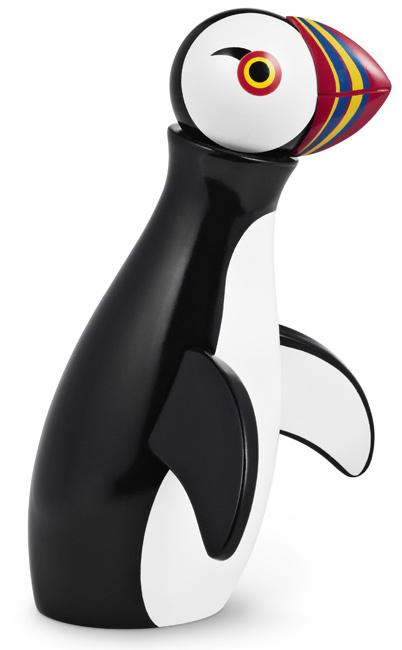 Der lustige Papageitaucher wurde von Kay Bojesen 1954 geschaffen und besticht durch seinen sympathischen Gesichtsausdruck. Dabei wollte Kay Bojesen eigentlich nicht, dass seine Tierskulpturen richtigen, lebendigen Tieren gleichen. Die Holztiere sollten eine eigene charakteristische Persönlichkeit haben.