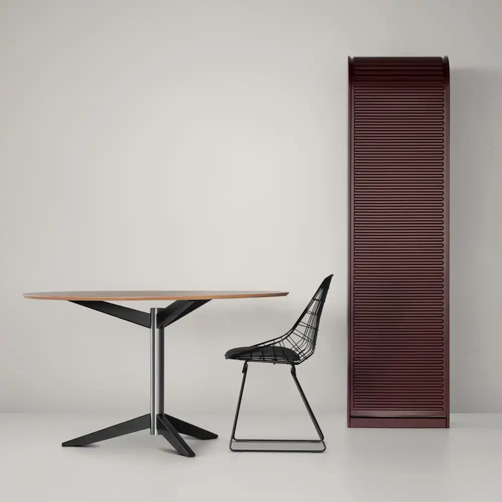 Cees Braakman (1917–1995) war einer der innovativsten niederländischen Möbeldesigner. Als Sohn des Pastoe-Managers Dirk Braakman wuchs er praktisch in der Fabrik auf und prägte ab 1948 als Chefdesigner die Kollektion des Unternehmens. Inspiriert von internationalen Designströmungen verlieh er Pastoe einen modernen, funktionalen Stil. Zu seinen bekanntesten Entwürfen zählen das modulare Schranksystem U+N sowie der Wire Chair von 1958. Braakmans Arbeiten sind bis heute für ihre zeitlose Ästhetik und hohe Funktionalität geschätzt.