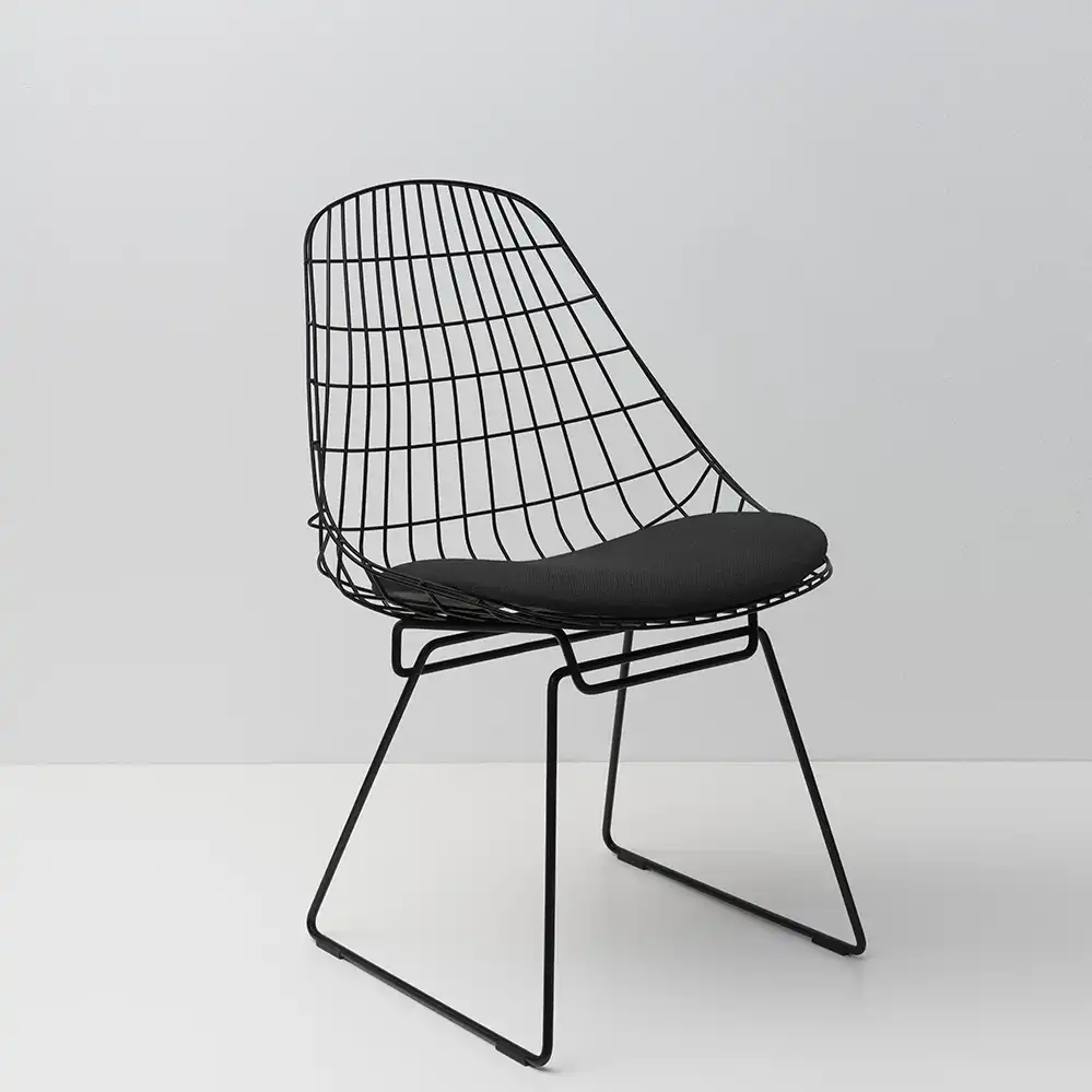 Der Wire Chair von Pastoe, entworfen 1958 von Cees Braakman, verbindet zeitlose Ästhetik mit funktionalem Design. Die filigrane Drahtstruktur verleiht dem Stuhl eine leichte, transparente Wirkung und macht ihn zu einem echten Blickfang in jedem Raum. Das minimalistische Gestell steht für klare Linien und moderne Eleganz – ein Design, das bis heute nichts von seiner Aktualität verloren hat. Für zusätzlichen Komfort ist der Wire Chair mit einem passgenauen Sitzkissen ausgestattet. Dieses wird exemplarisch in vier Farben des Bezugsstoffes Technicolor von Kvadrat angeboten. Weitere Stoffvarianten und Farben sind auf Anfrage erhältlich. Gerne senden wir Ihnen hierfür Farbfächer zu.