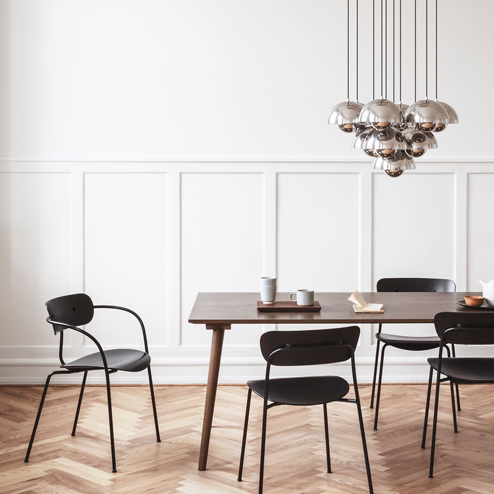 Der stapelbare Pavilion Stuhl wurde 2016 von dem norwegischen Designduo Anderssen & Voll für die Wiedereröffnung des Langelinie Pavilions in Kopenhagen entworfen. Der von Niels and Eva Koppel entworfene Langelinie Pavilion gilt als eine der Inkunabeln der dänischen Architektur der 1950er Jahre, dort wurden erstmalig die Artichoke Leuchten von Poul Henningson eingesetzt. Torbjørn Anderssen und Espen Voll orientierten sich bei ihrem Entwurf der neuen Pavilion Stühle an Möbel dieser Ära, gaben den Stühlen aber gleichzeitg einen modernen etwas weicheren, organischen Look, den sie durch die Kombination von gebogenen Stahlrohr und geformten Sperrholz erreichten. Erhältlich ist der Pavilion Chair wahlweise als Stuhl (Modell AV1) und als Armlehnstuhl (Modell AV2).