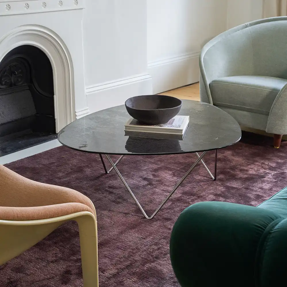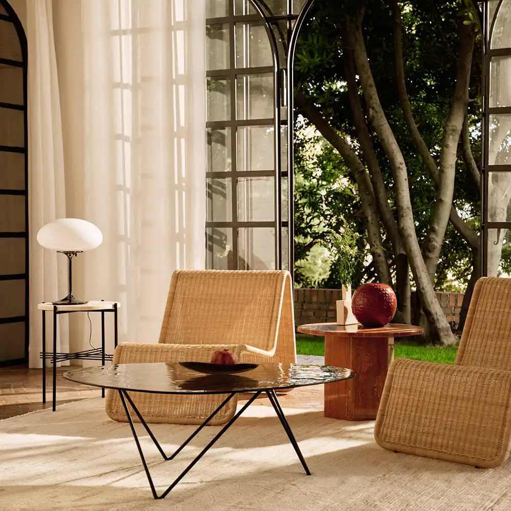 Den Pedrera Couchtisch von Gubi entwarf der spanische Architekt Barba Corsini Anfang der 1950er Jahre für die Wohnungseinrichtungen im Dachgeschoss der Casa Milà von Antonio Gaudí. Abgeleitet ist der Produktname dabei von dem Spitznamen des heute zum Weltkulturerbe zählenden Wohngebäudes La Pedrera („der Steinbruch“). Denn 1953 wurde Barba Corsini von der Immobiliengesellschaft, die das Gebäude damals verwaltete, gebeten, das Dachgeschoss auszubauen und dort neue Wohnungen einzurichten. Dafür entwarf Barba Corsini die Pedrera-Leuchtenfamilie sowie den gleichnamigen, dreibeinigen Glastisch.