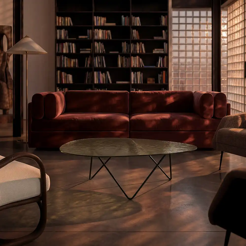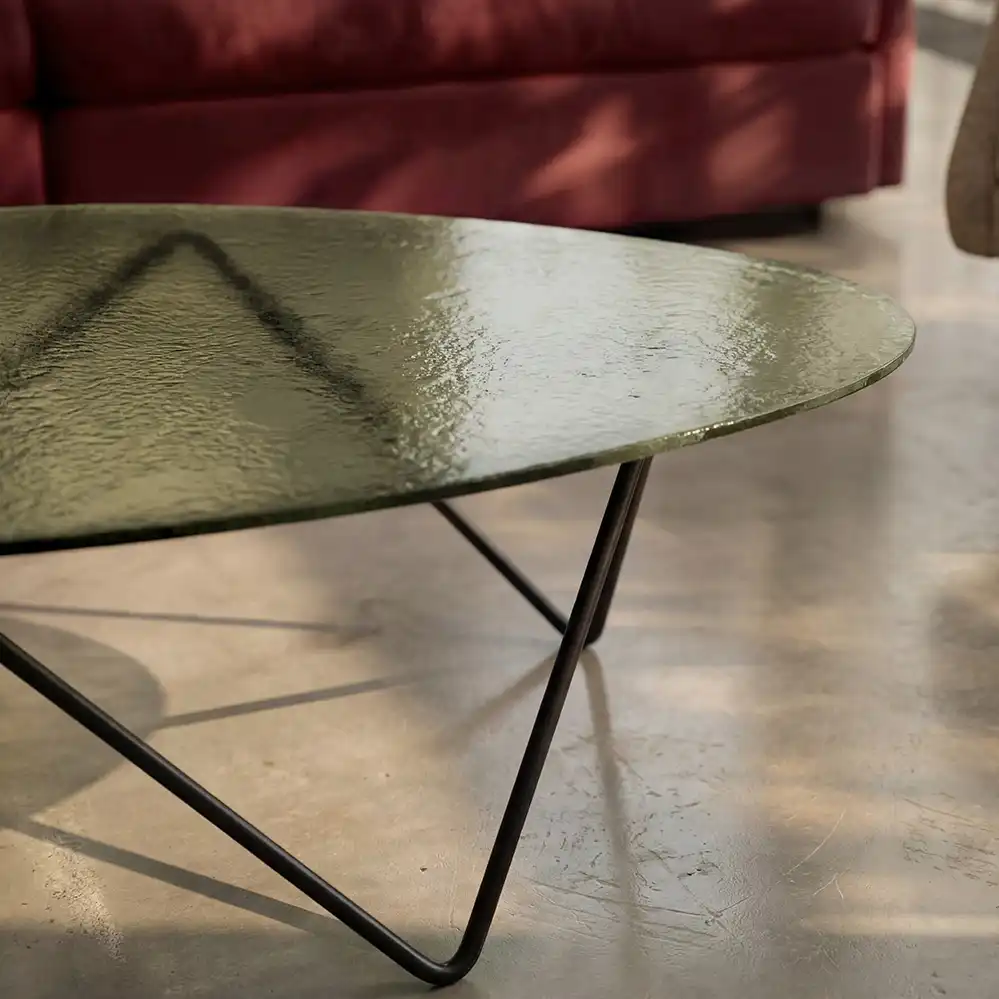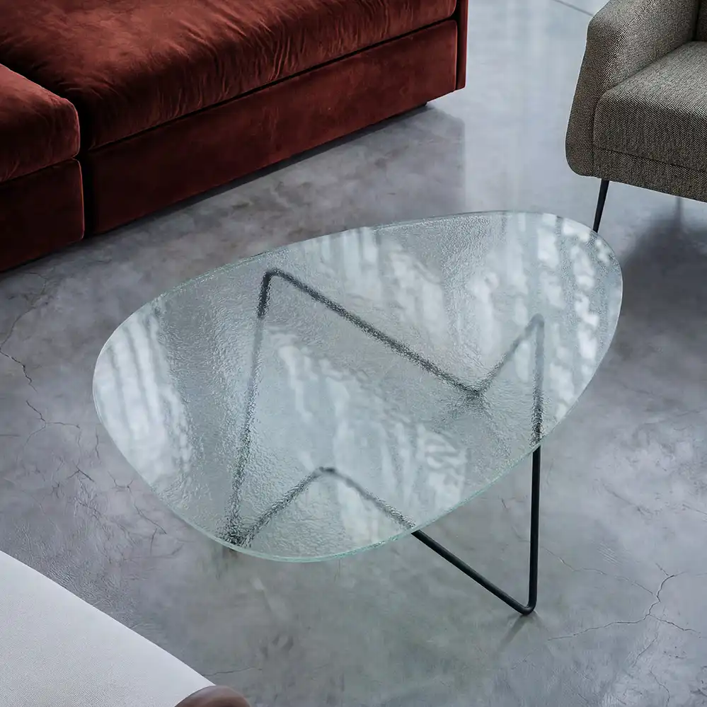 Seit 2026 wird der Pedrera Couchtisch neben dem klassischen glatten Glas zusätzlich in einer neuen Serie aus Strukturglas angeboten, die das ikonische Design um eine zeitgenössische Materialinterpretation erweitert. Erhältlich sind dabei die drei Ausführungen Bronziert, Rauch und Transparent, die dem Tisch – je nach Wahl – eine warme, eine mystisch-abgedunkelte oder eine klare, puristische Wirkung verleihen.