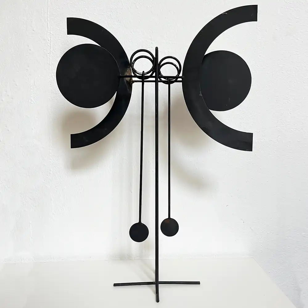 Die rund 55 cm hohe Skulptur ist ein Originalobjekt des Künstler Arnulf Hoffmann und eventuell ein Prototyp Bekannt wurde der rheinländische Künstler Arnulf Hoffmann vor allen durch seine kinetischen Skulpturen, die sich auch im Art-Design-Bereich großer Beliebtheit erfreuen. Seine größte Plastik findet sich übrigens im Köln von dem Colonius-Fersehturm und stammt aus dem Jahr 1977.