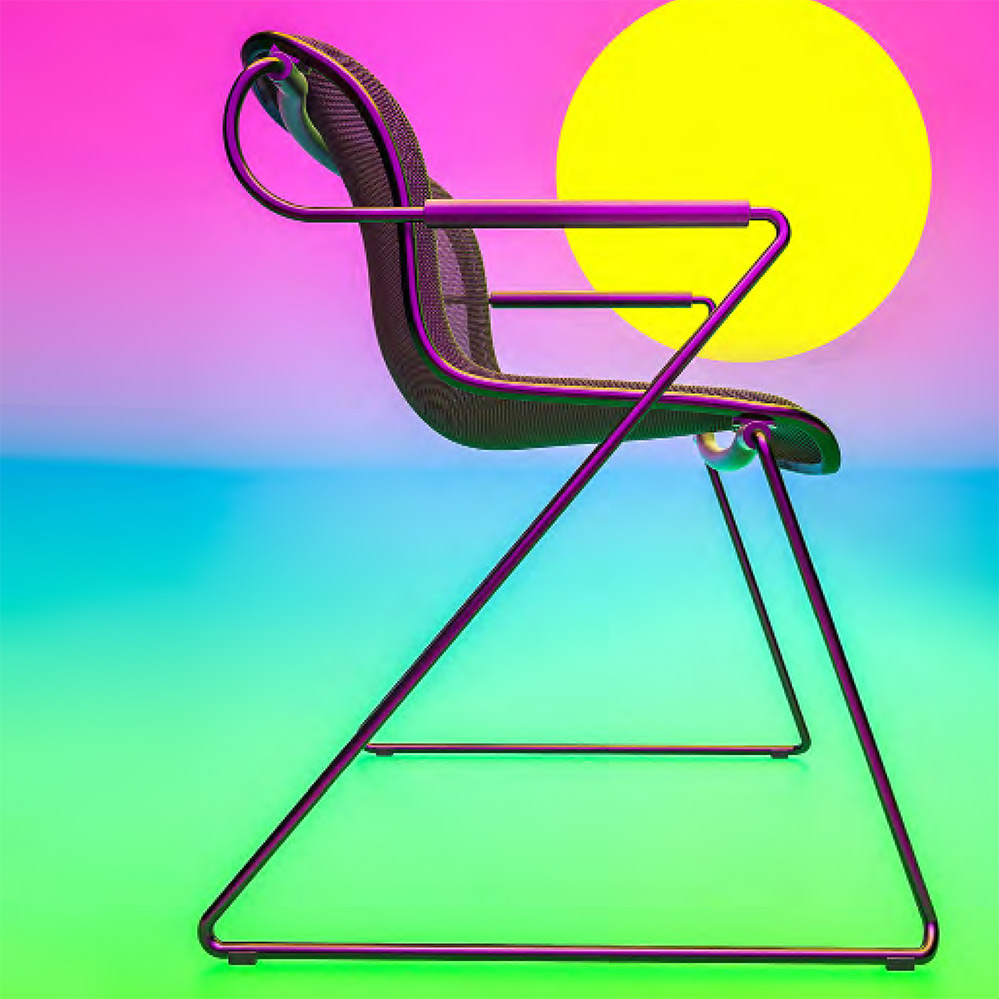 Der Stuhl Penelope ist ein späterer Entwurf von Charles Pollock aus dem Jahr 1982 für Castelli. Das Besondere an dem Entwurf ist das innovative Metallgeflecht der Sitzschale, das damals erstmalig für einen Stuhl verwendet wurde und in den 180er und 90er Jahrn dann viele Nachahmer fand.