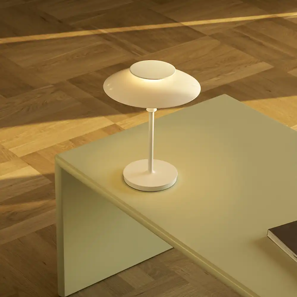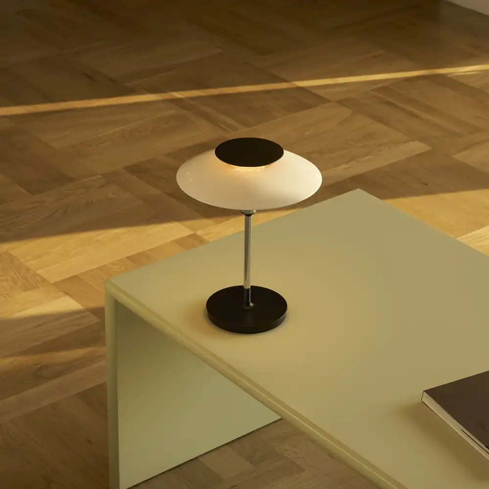Die PH 80 Portable ist die kompakte, tragbare Version der PH 80 Leuchte und wurde 2025 von Louis Poulsen neu aufgelegt. Inspiriert vom Originaldesign aus dem Jahr 1974, das als Hommage an den dänischen Designer Poul Henningsen entstand, setzt die PH 80 Portable konsequent auf das Prinzip der indirekten Beleuchtung. Das charakteristische, dreischichtige Schirmdesign aus opalem Acryl sorgt für ein angenehm warmes, blendfreies Licht und lässt sich dank integrierter Dimmfunktion flexibel anpassen. Die PH 80 Portable ist in einer komplett weißen Ausführung sowie in einer Chrom-Variante mit verchromtem Stab, schwarzem Fuß und rot-schwarz lackiertem oberen Kegel erhältlich.
