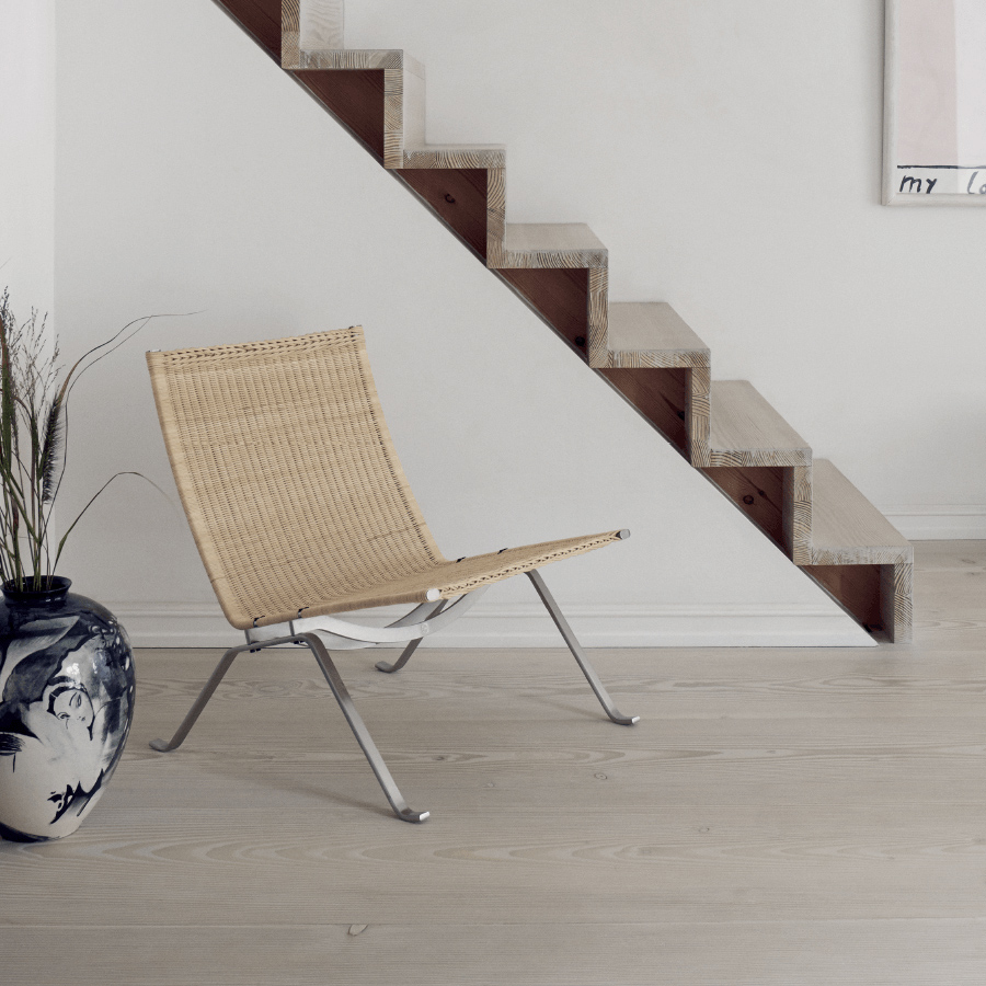 Der Fritz Hansen Sessel PK22 von Poul Kjaerholm ist wahlweise in Peddingrohr, Canas oder Leder bei Fritz Hansen erhältlich. Die hier angebotene Variante ist die preisgünstige Version mit einer Peddingrohr-Bespannung.