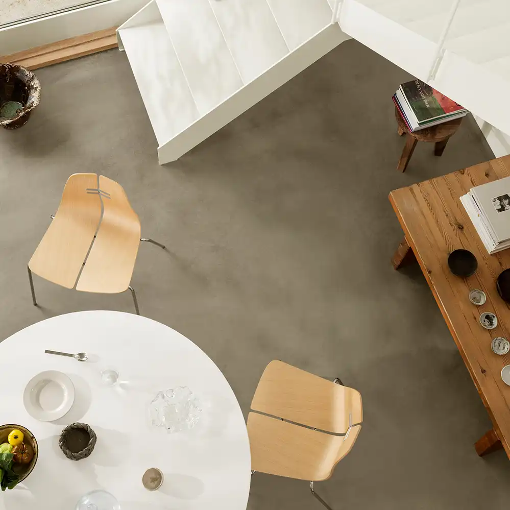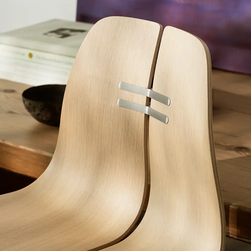 Der PK3 ist ein wiederentdeckter Entwurf des dänischen Designers Poul Kjærholm aus dem Jahr 1954 und wird erstmals seit 2025 von Fritz Hansen produziert. Die kompakte Sitzgelegenheit vereint skulpturale Ästhetik mit funktionaler Klarheit und markiert einen wichtigen Meilenstein in Kjærholms früher Designentwicklung. Die Konstruktion besteht aus zwei spiegelbildlich geformten Furnierschalen, die durch ein charakteristisches Verbindungselement aus Aluminium zusammengefügt sind. Ein schlanker Rahmen aus Stahlrohr verleiht dem Stuhl Stabilität und Leichtigkeit. Die ausgewogenen Proportionen und die organische Haptik machen den PK3 sowohl für private Wohnräume als auch für öffentliche Bereiche geeignet. Erhältlich ist der PK3 in Eiche oder Nussbaum mit einem Gestell aus verchromten Stahl. Die Version in schwarzer Esche finden Sie unten.
