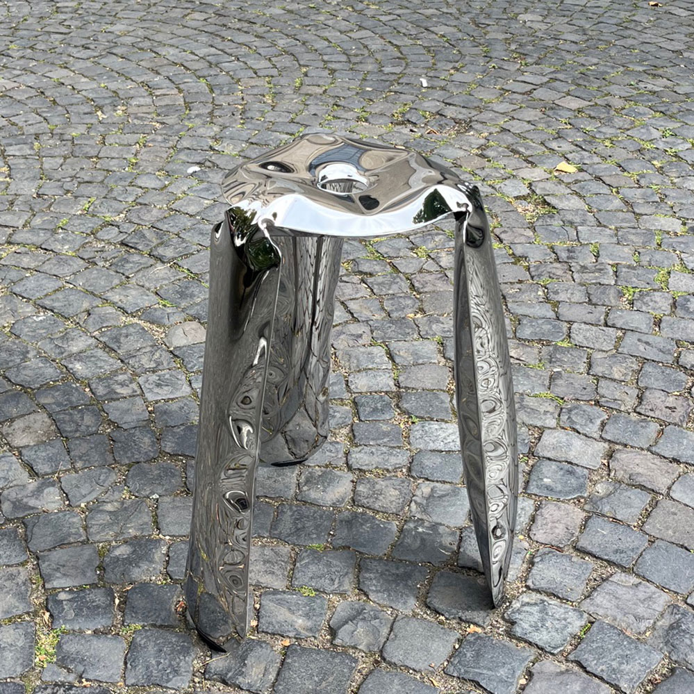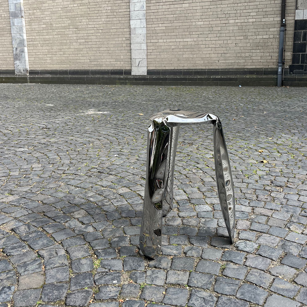 Basierend auf dem vielfach ausgezeichneten Plopp Hocker entwarf Oskar Zięta den Barhocker in zwei Sitzhöhen (65 und 75 cm), die hier angebotene Version ist der 65 cm hohe Küchenhocker. Der dreibeinige Hocker wird wahlweise aus lackiertem Carbon-Stahl oder glänzenden Inox-Stahl produziert, neben den bei Markanto angebotenen Farben sind auch zahlreiche andere Farben möglich. Der 75 cm hohe Barhocker verfügt noch um einen Extraring zur Ablage der Füße (Hocker mit 65 cm ohne den Ring!).