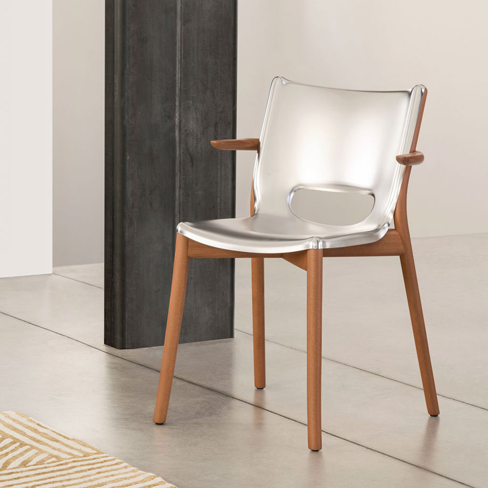 - Poêle Chair: Schale Edelstahl poliert, Gestell Buche dunkel