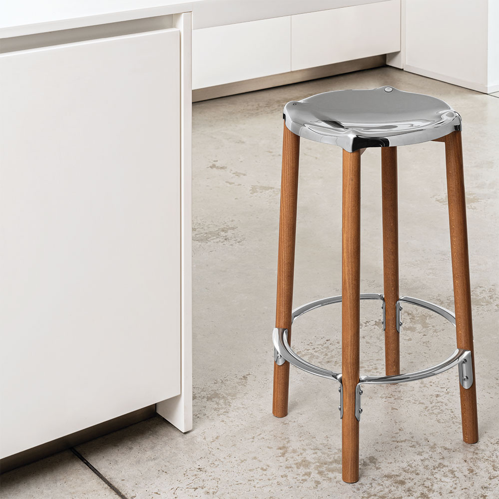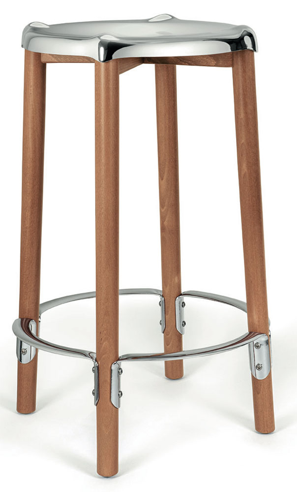 - Poêle High Stool: Sitz Edelstahl poliert, Gestell Buche dunkel