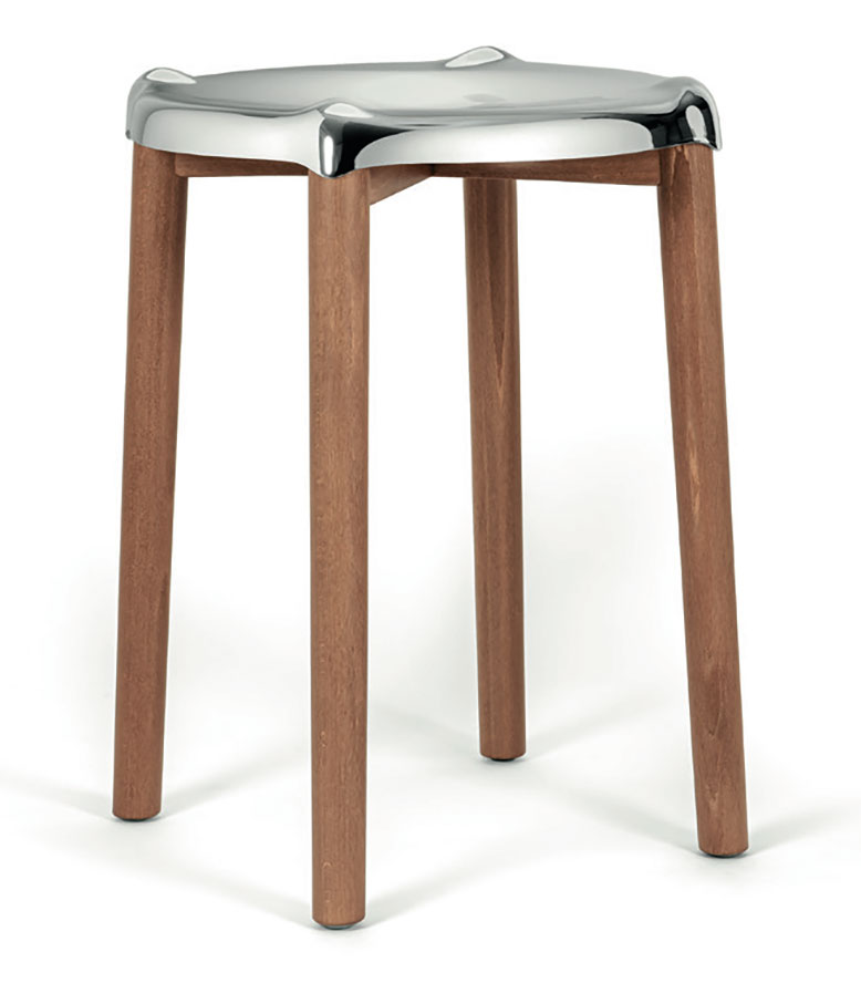 - Poêle Stool: Sitz Edelstahl poliert, Gestell Buche dunkel