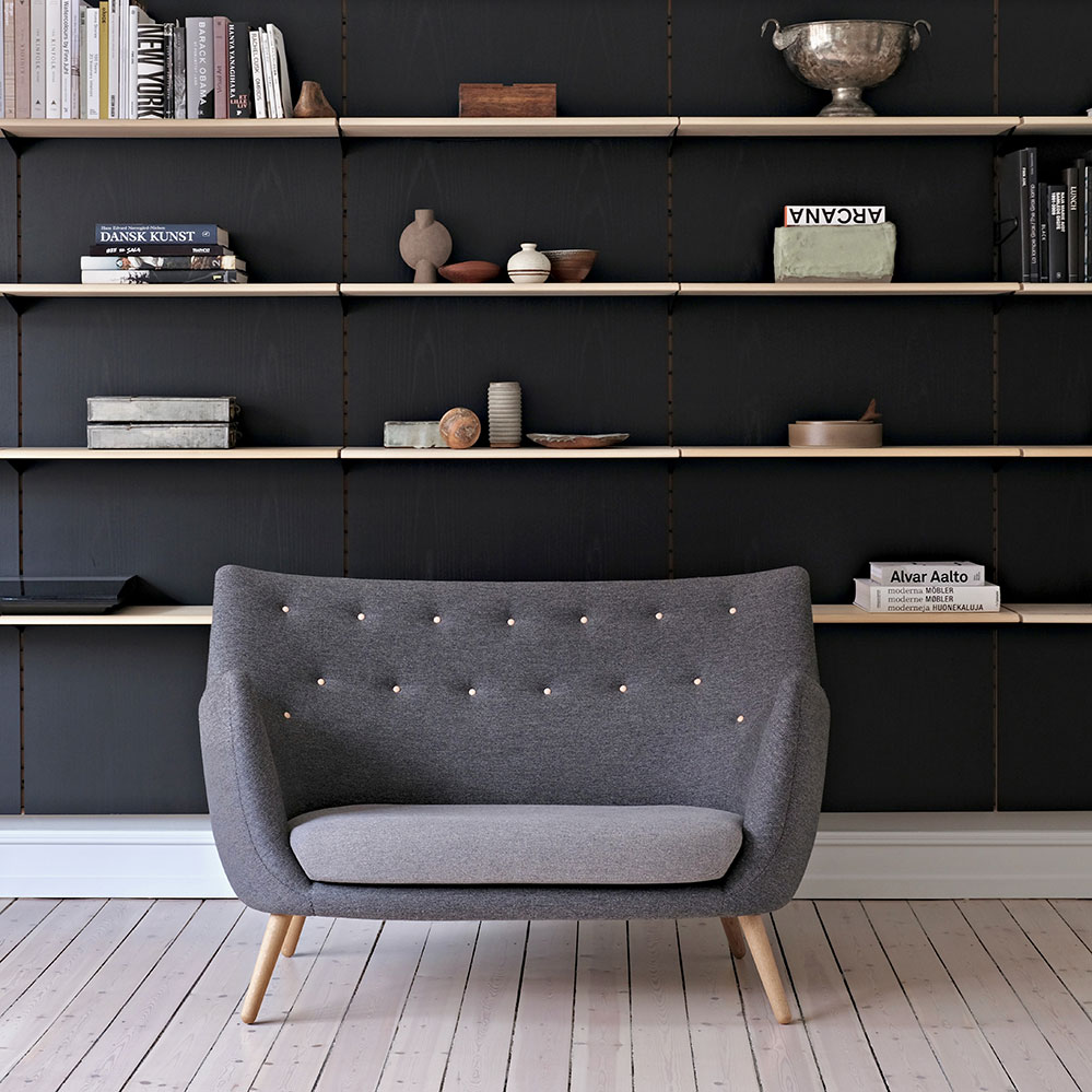 Ein Jahr nach der Präsentation des berühmten Pelican Chairs präsentierte Finn Juhl auf der Cabinetmakers Guild Exhibition in Kopenhagen 1941 ein Sofa. Das kleine Poet Sofa greift dabei Elemente des organischen Sessels mit auf und ist die ideale Ergänzung für die ikonische Sitzgruppe. Lieferbar ist das Poet Sofa von House of Finn Juhl neben dem hier angebotenen Remix-Stoff von Kvadrat noch in weiteren Stoffen oder in Leder (oder als Kombination Stoff mit Lederkissen).