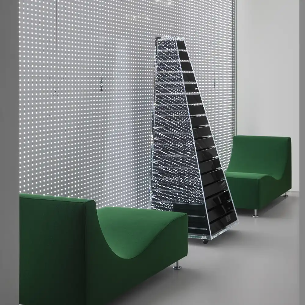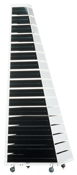 1968 entwarf Shiro Kuramata die Kommode Pyramid in einem futuristischen High-Tech-Look. Umgeben von einem Mantel aus transparentem Metacrylat-Kunststoff enthält die Kommode 17 unterschiedliche Schubladen aus schwarzen Metacrylat.